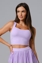 A streamlined crop top with a square neckline and wide straps for a supportive fit. Designed with scrunch detailing along the sides and a built-in bra with removable padding for customizable support. Crafted from smooth stretch fabric that moves with you, it’s perfect for layering or wearing solo in and out of the studio.