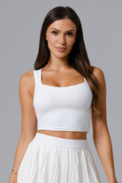 A streamlined crop top with a square neckline and wide straps for a supportive fit. Designed with scrunch detailing along the sides and a built-in bra with removable padding for customizable support. Crafted from smooth stretch fabric that moves with you, it’s perfect for layering or wearing solo in and out of the studio.
