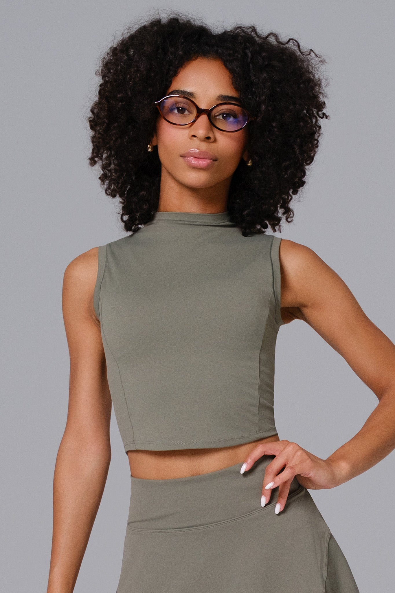 Minimalist and sculpting, the Colleen Crop Top is designed with a sleek mock-neckline and built-in bra with removable padding for customizable support. Its clean lines make it versatile enough for a reformer class or layered under a blazer post-studio.