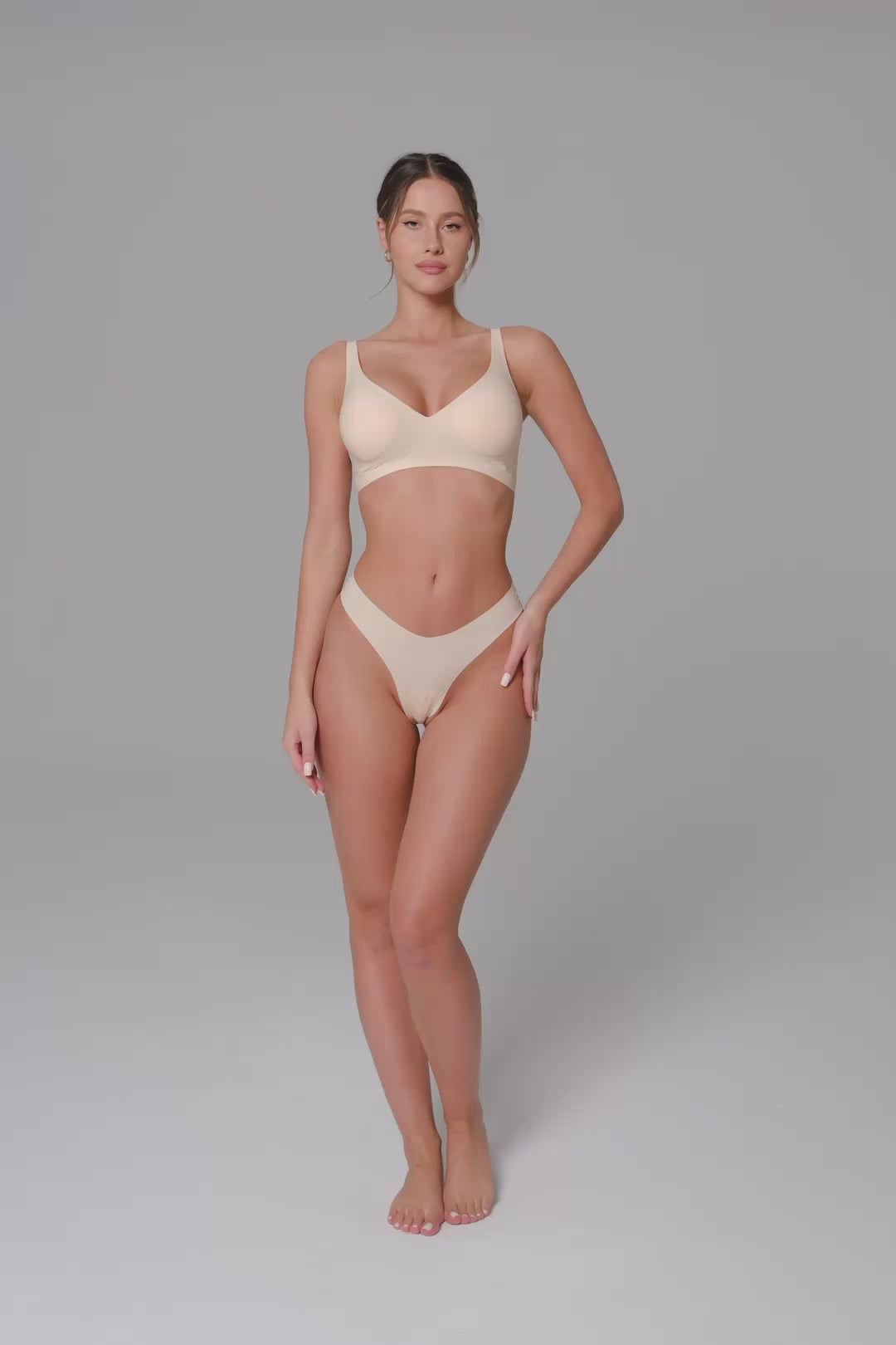 Sculpting and seamless. Designed with a deep plunge neckline and molded cups. Made from thick, supportive stretch fabric that smooths and shapes with a barely-there feel. Finished with adjustable straps and removable padding for customizable support.