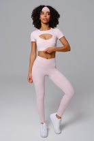 High-waisted with a V-shaped waistband made from buttery-soft fabric with light compression. The subtle scrunch seam with light elastic adds a sculpted, lifted look—noticeable enough to flatter, subtle enough to wear every day.