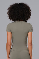 A sleek, minimal tee designed without padding for a second-skin feel. The high crew neckline and short sleeves create a polished silhouette that moves with you—ideal for training, errands, or layering.