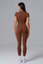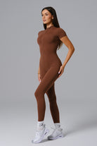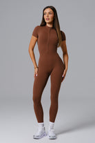 Designed with a sleek zip-front and short sleeves, the Hailey Jumpsuit brings a modern edge to an activewear classic. The full-length silhouette is crafted from smooth, flexible fabric that moves with you. Perfect for layering or wearing solo, it delivers comfort and style from studio to street.