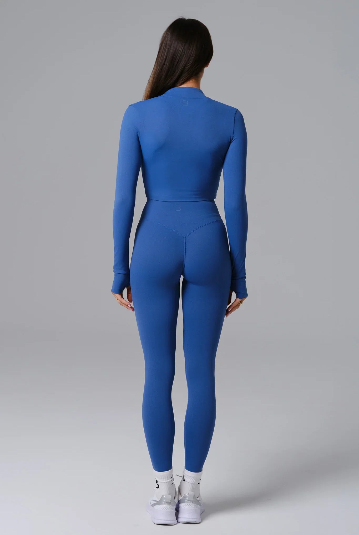 Streamlined and sculpting. Stella features a contoured fit with thumbholes, a full zip front, and ribbed compression panels for structure and hold. The curved hemline sits slightly higher on the sides, accentuating the waist and hips.