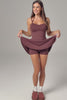 A flattering mini dress with a sweetheart neckline, adjustable straps, and a flared skirt over built-in shorts with pockets. Designed in soft, stretchy fabric for comfort and ease of movement. Perfect for on-the-go days, casual outings, or an active lifestyle.