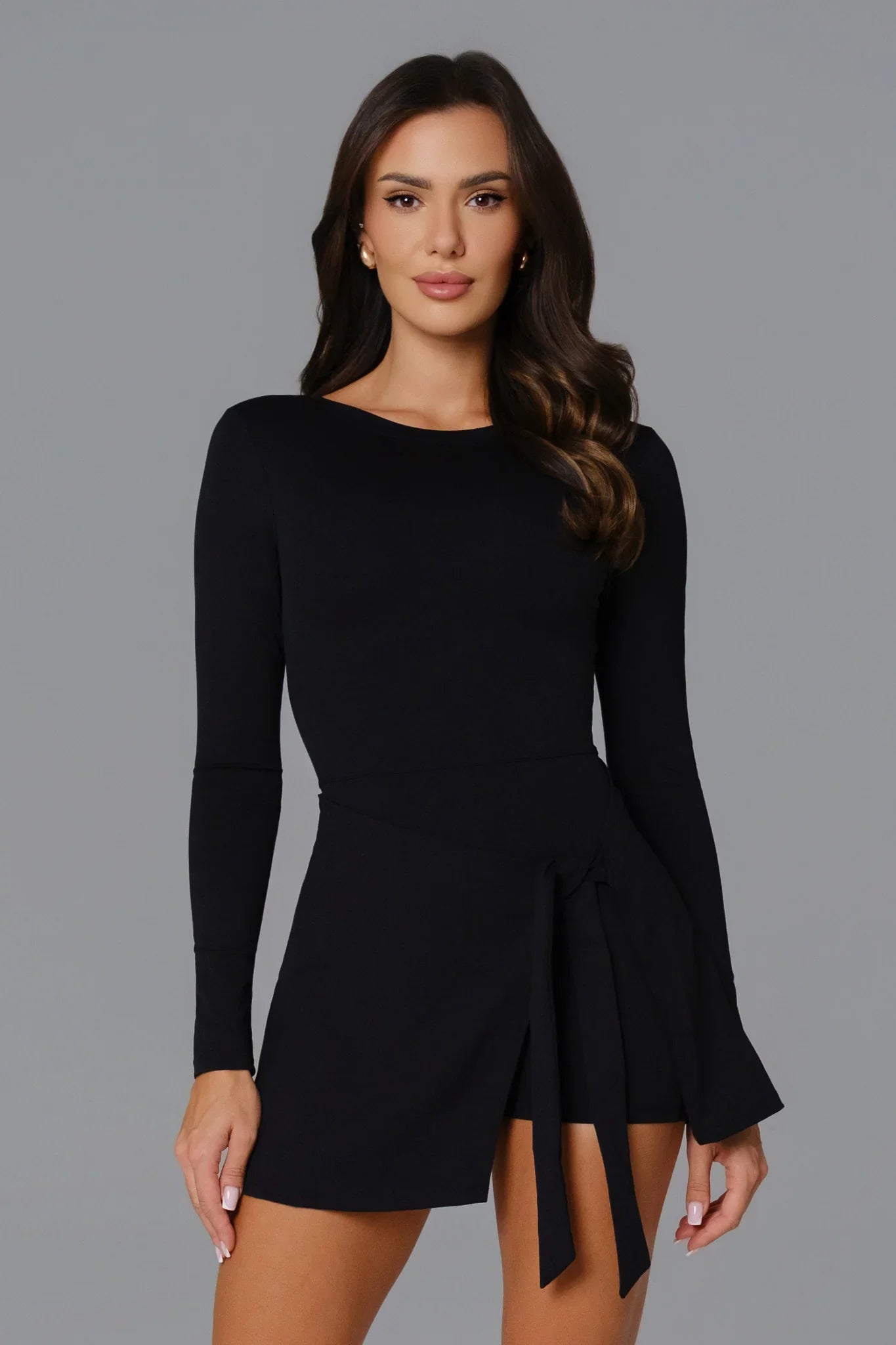 A streamlined mini dress with a built-in romper for coverage and ease. Designed with long sleeves and a U-back for a sleek, minimal look. Made from smooth, stretchy fabric that moves effortlessly through the day.