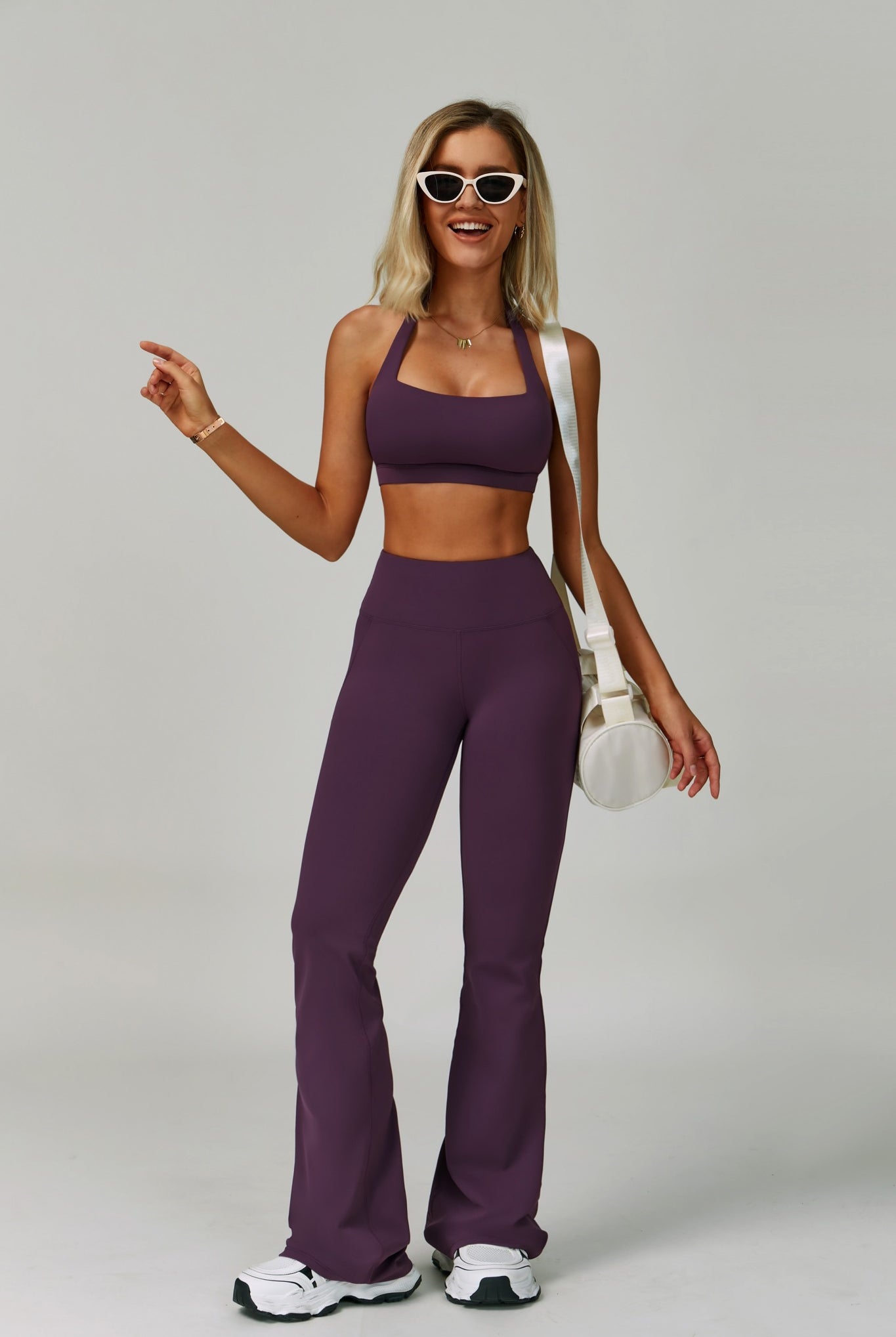 The Nicole Flare Leggings sit high on the waist with a smooth, supportive feel. Snug through the hips and thighs with a subtle bootcut, they flatter while giving you room to move—whether it’s yoga, Pilates, or simply taking it easy.