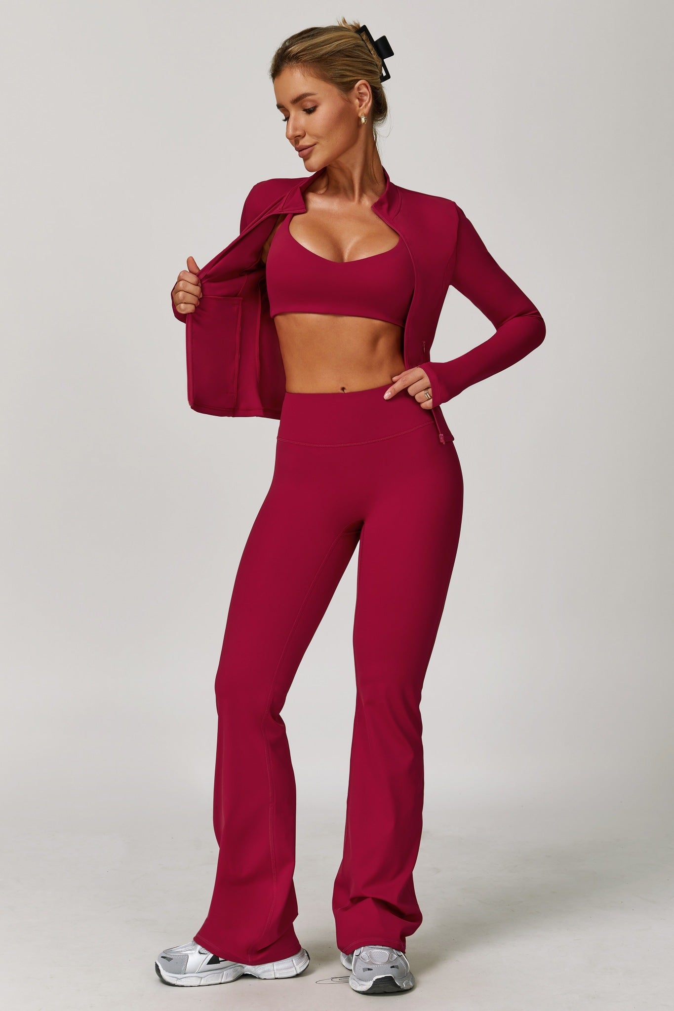 Meet the Stacey Flared Leggings—where comfort meets effortless style. Snug through the hips and thighs with a flared bootcut that adds just the right amount of flair, these leggings are made to handle everything from active days to laid-back vibes. The high-waisted fit keeps you secure while offering a flattering look, so you can move freely without fuss. Perfect for yoga, pilates, or a cozy day on the couch, they’re an easy favorite you’ll keep reaching for.