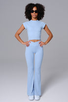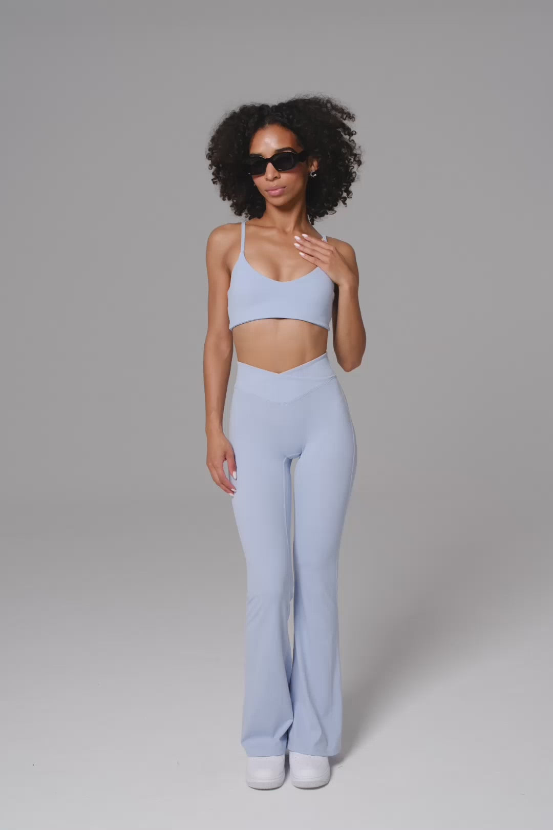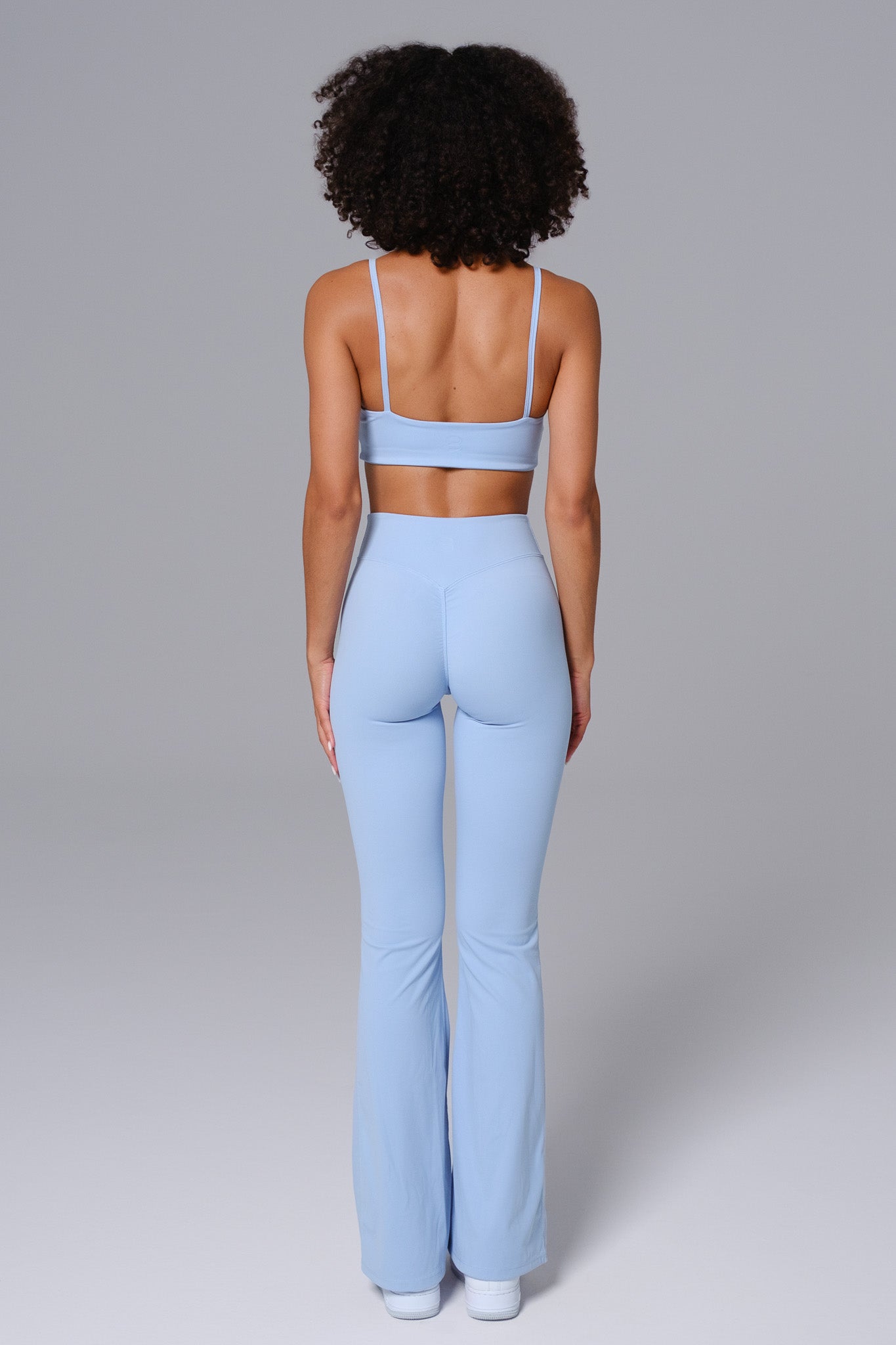 Form-fitting flare leggings crafted from recycled nylon with a soft, flexible finish. Designed with a V-cut waistband and a defined scrunch seam with light elastic for a sculpted, lifted look—noticeable enough to flatter, subtle enough to wear every day.