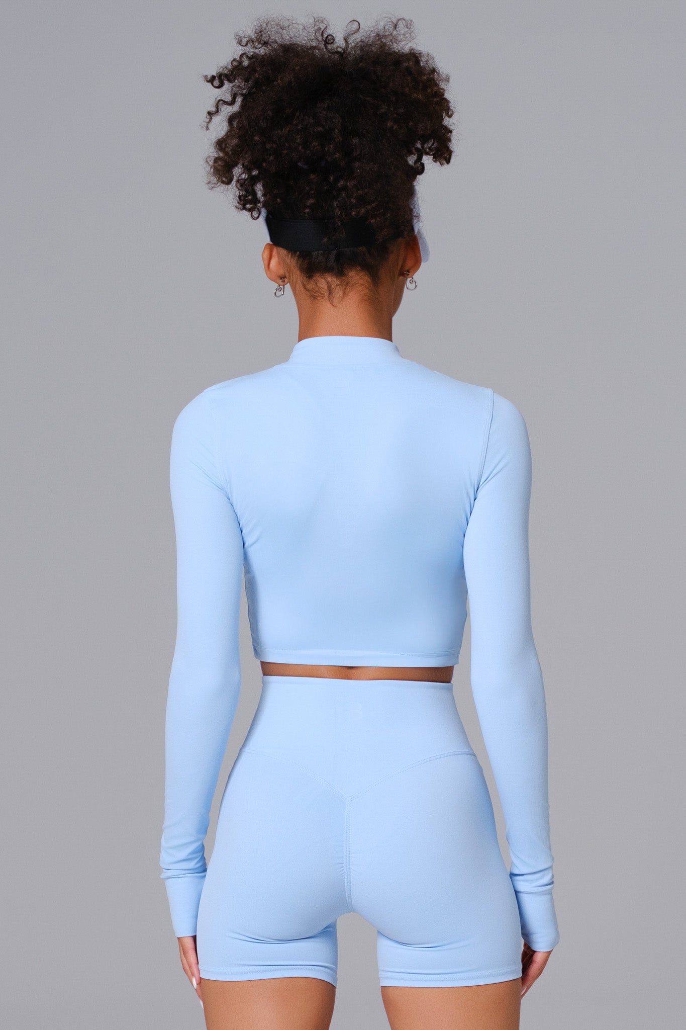 A cropped zip-up jacket designed for layering. Made with smooth, stretchy fabric for a second-skin fit, complete with long sleeves and thumbholes for added comfort. Perfect for warming up, cooling down, or everyday wear.