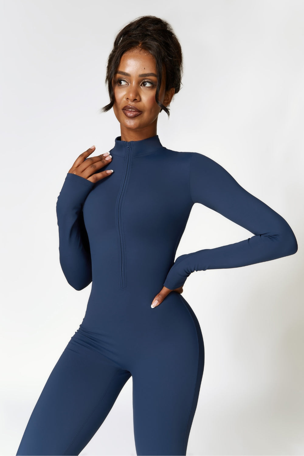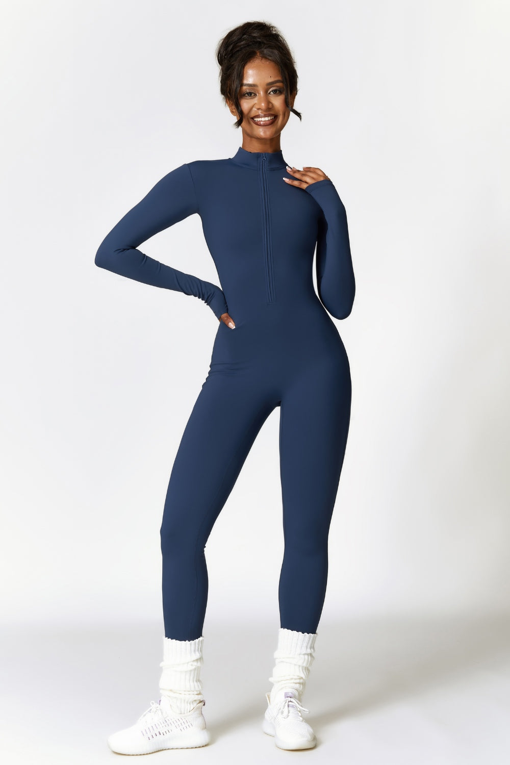 Your ultimate partner for those cooler days. Crafted from a thicker fabric to keep you warm and cozy without ever compromising on style. With its sleek high-neck zip and long sleeves, you’ll look sharp and stay comfortable whether you're bustling through an active day or enjoying some downtime. The high-neck zip isn’t just a stylish detail—it’s designed with your convenience in mind, making it super easy to slip on or off. Whether you're gearing up for a workout or just taking a leisurely weekend stroll, the Melissa Jumpsuit perfectly marries functionality with fashion, ensuring you look and feel great in any scenario. Get ready to step into a jumpsuit that not only looks fab but feels like a warm hug during the chilly season.