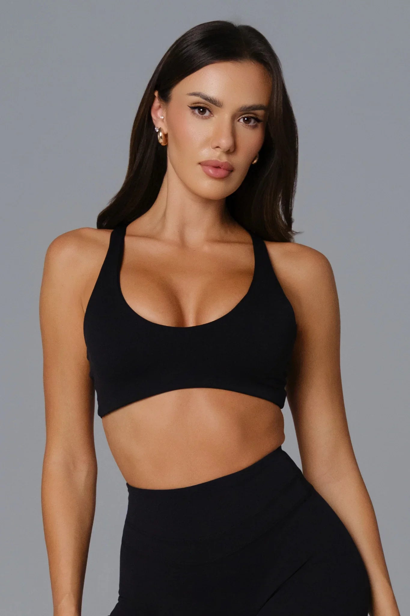 Supportive and sleek. Asha features a deep V neckline with adjustable straps and a compressing ribbed band. Made from smooth, thick stretch fabric with removable padding for extra support.