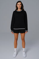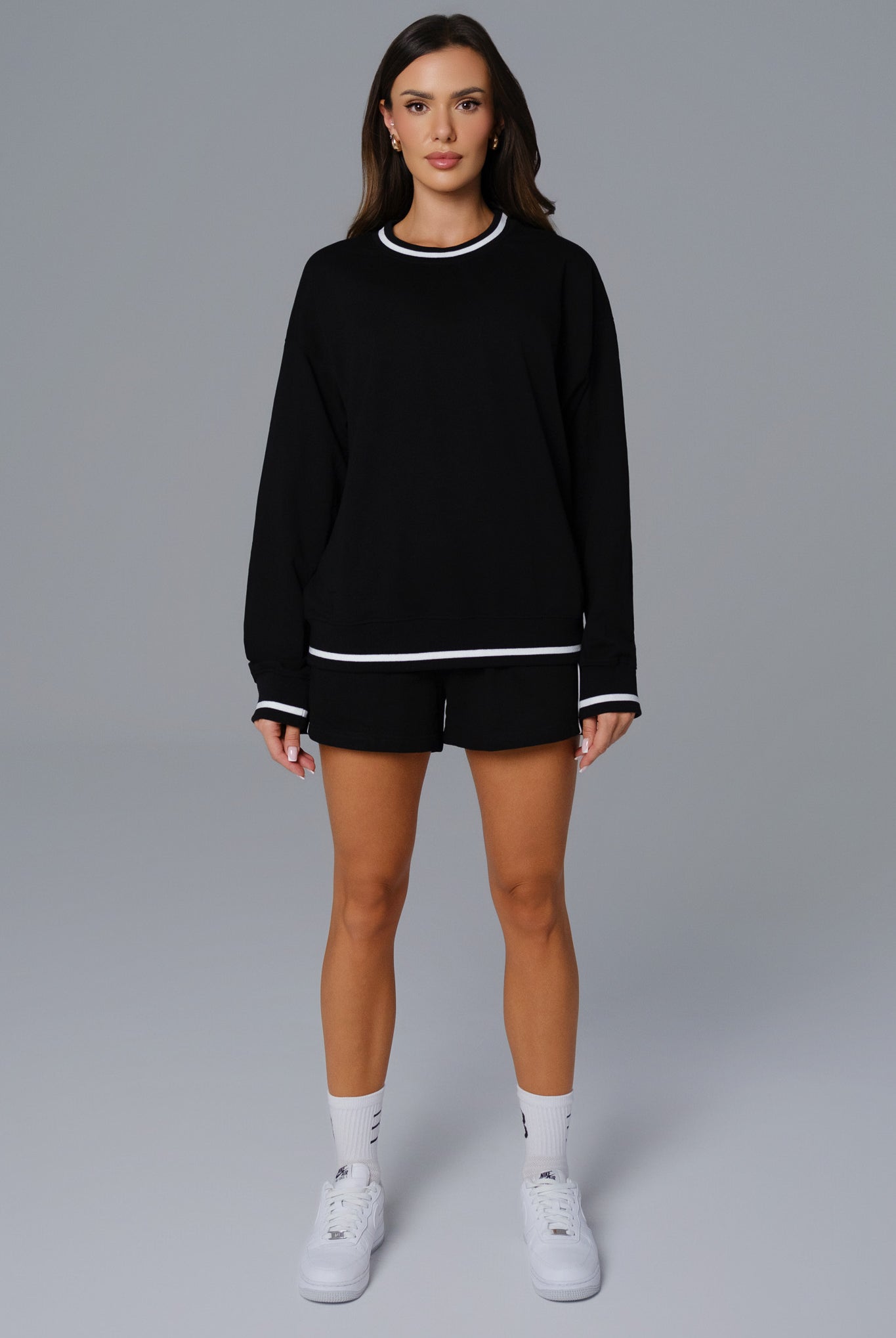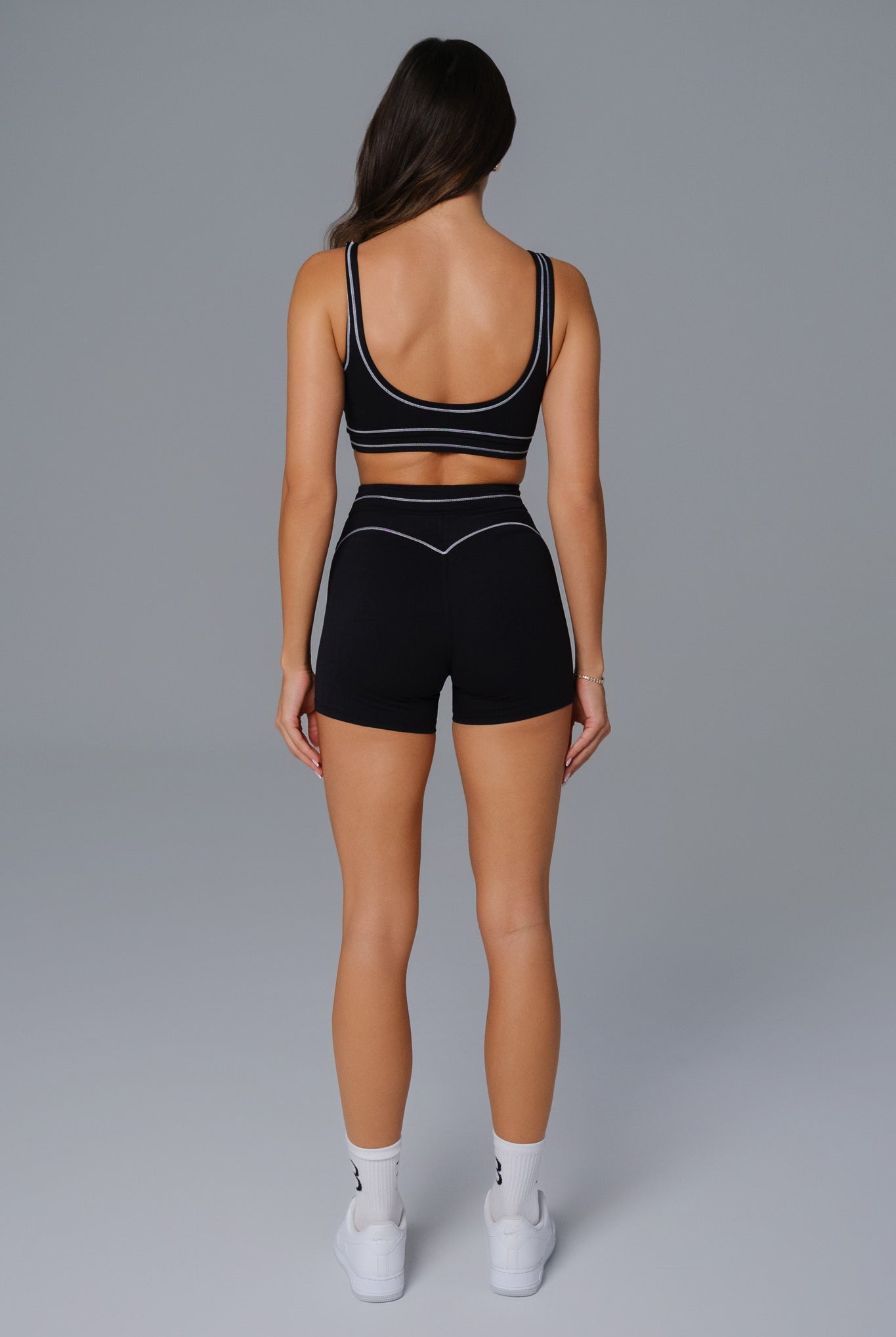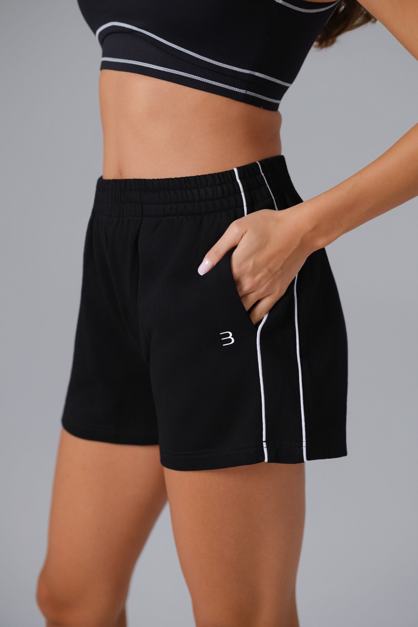 Casual and refined. Nadine shorts are made from a soft cotton-blend fabric with an elastic waistband for comfort and contrast white contouring lines along the sides. Designed for an effortlessly relaxed fit.