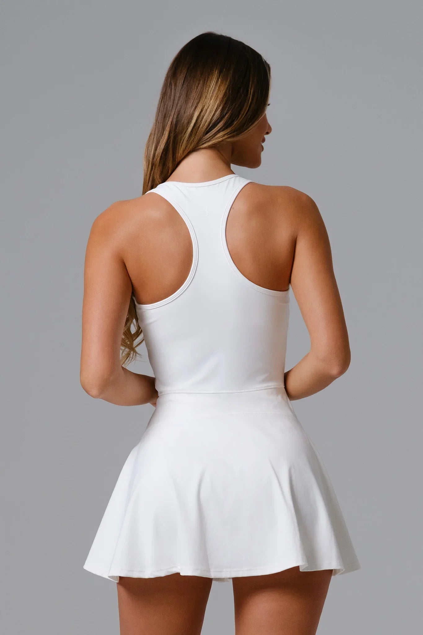A sporty-chic mini dress with a scoop neckline, front zip detail, and racerback design. Made from lightweight, breathable fabric with built-in shorts for comfort and ease of movement. Perfect for tennis, golf, or casual all-day wear.