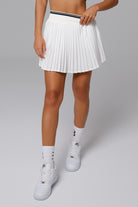 Sporty and refined. Avery features structured pleats and a compressing ribbed waistband. Inspired by vintage tennis silhouettes with modern contrast accents. Built-in breathable shorts with a side pocket provide comfort and coverage for movement.