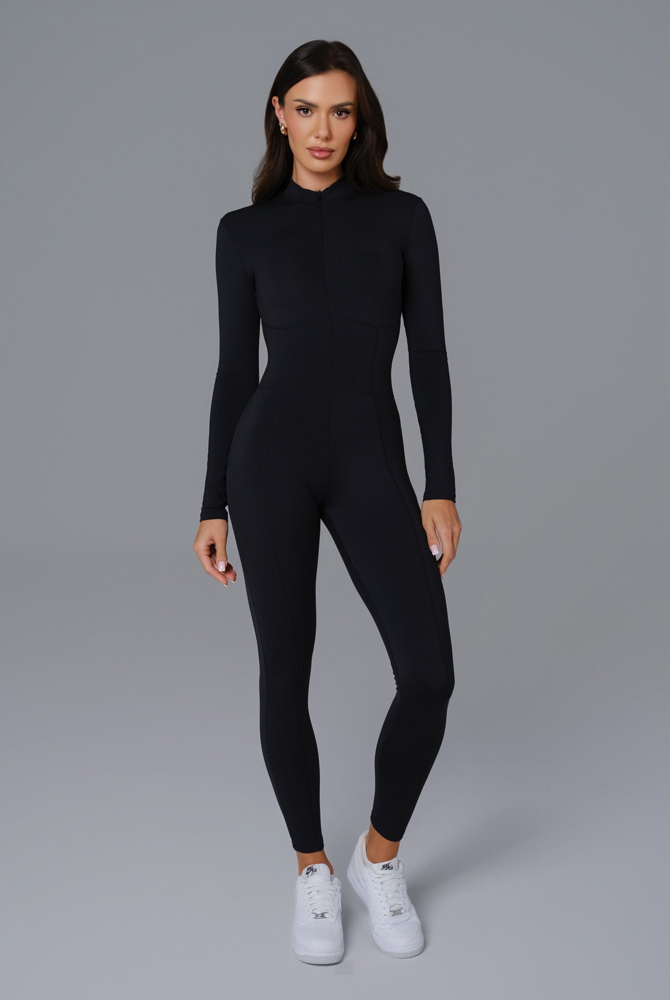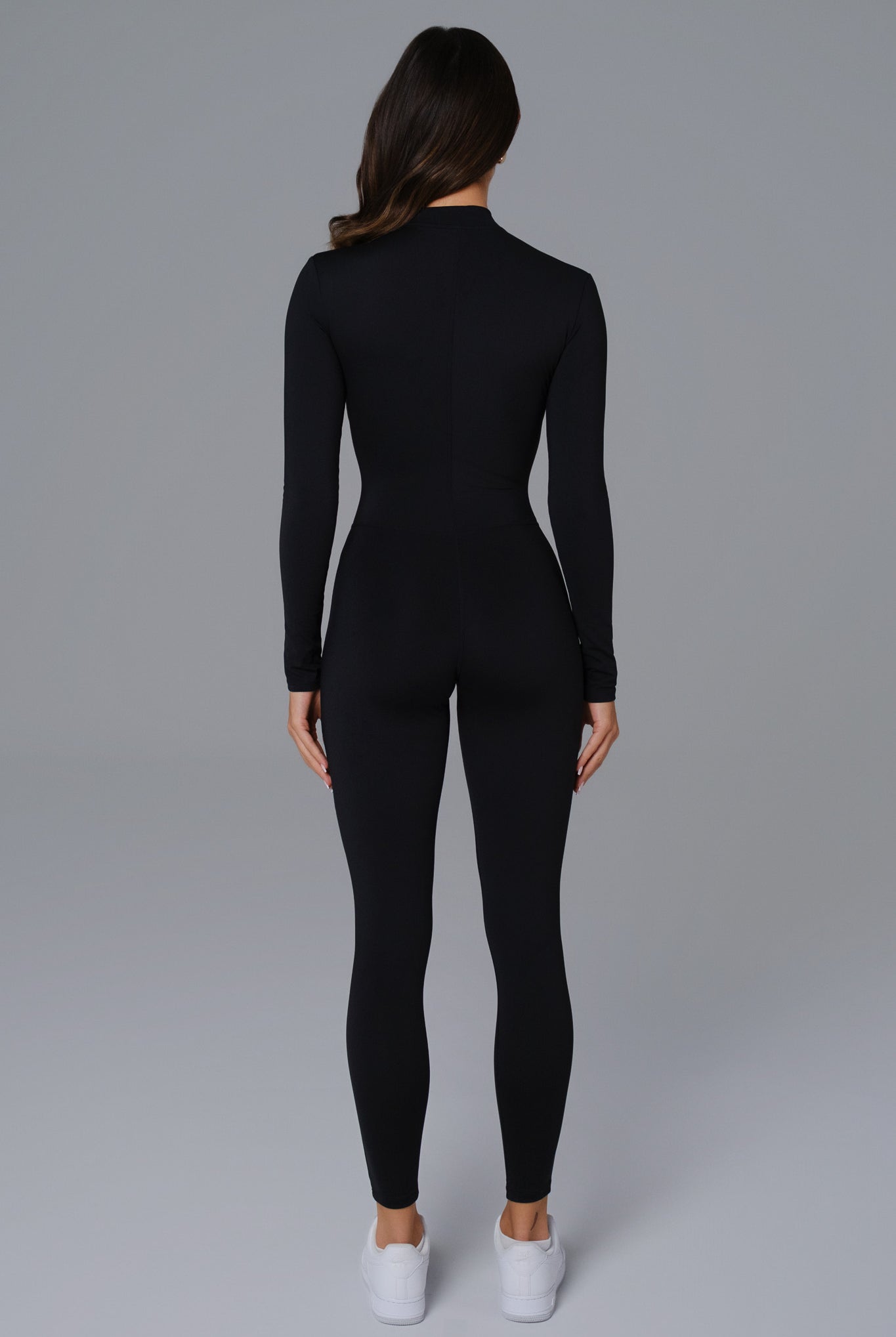 Sleek and versatile, the Mia Jumpsuit features a full-length silhouette with long sleeves and a zip-front design for adjustable coverage. Made from smooth, stretchy fabric, it moves with you effortlessly. A modern essential that transitions seamlessly from workouts to off-duty moments.