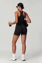Introducing the Stella Racer Top - your new favorite for staying active or just lounging around. It rocks a racerback design and a vest-style front neck, striking the perfect balance between chic and comfortable. Whether you're hitting the yoga mat, tackling some pilates, or pushing through a high-energy workout, this top moves with you, ensuring you're ready for anything the day throws your way.