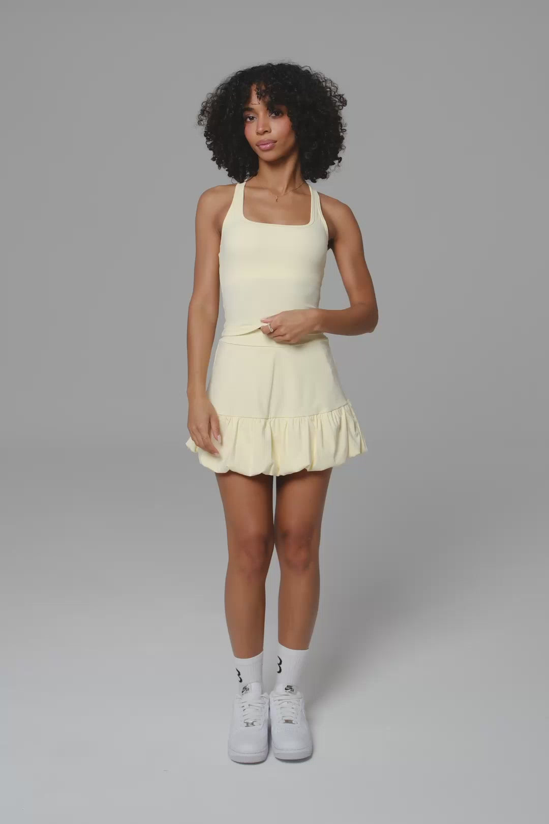 Liana features a clean square neckline, a close body fit, and a racerback silhouette for easy movement. Made from soft, compressive stretch fabric with removable padding for subtle lift and shaping.