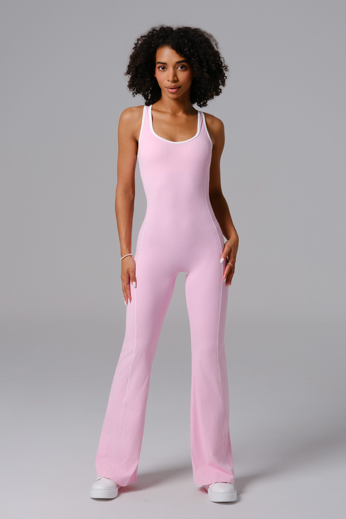 A sleek one-piece designed with contrast piping, a scoop neckline, and flared legs for a flattering silhouette. The open racerback adds a sporty edge while the soft, stretchy fabric moves with you for all-day comfort. Built with a removable padded bra for light support and a smooth fit, making it an effortless blend of style and function.