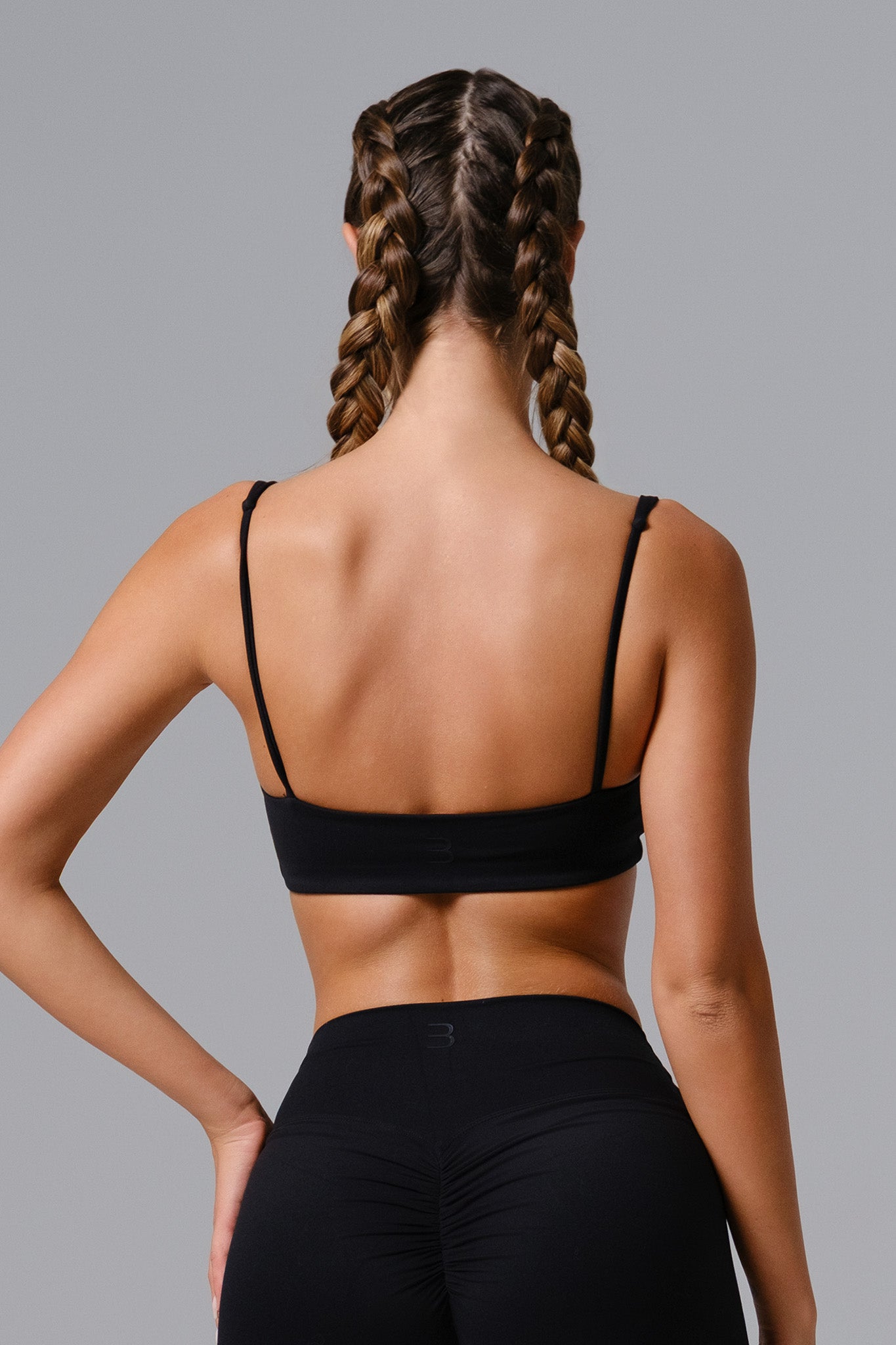 A minimal, supportive sports bra with built-in removable padding for a customizable fit. Designed with slim straps and a scoop neckline, it gives a clean, feminine look that moves seamlessly from pilates class to coffee runs.