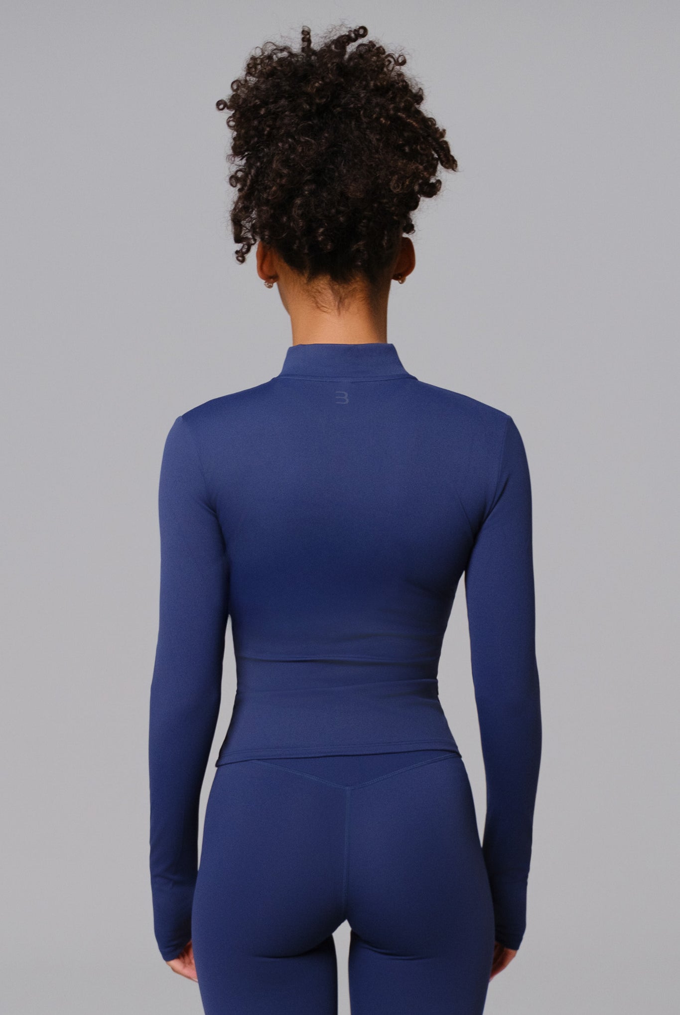 A cropped zip-up jacket designed for layering. Made with smooth, stretchy fabric for a second-skin fit, complete with long sleeves and thumbholes for added comfort. Perfect for warming up, cooling down, or everyday wear.