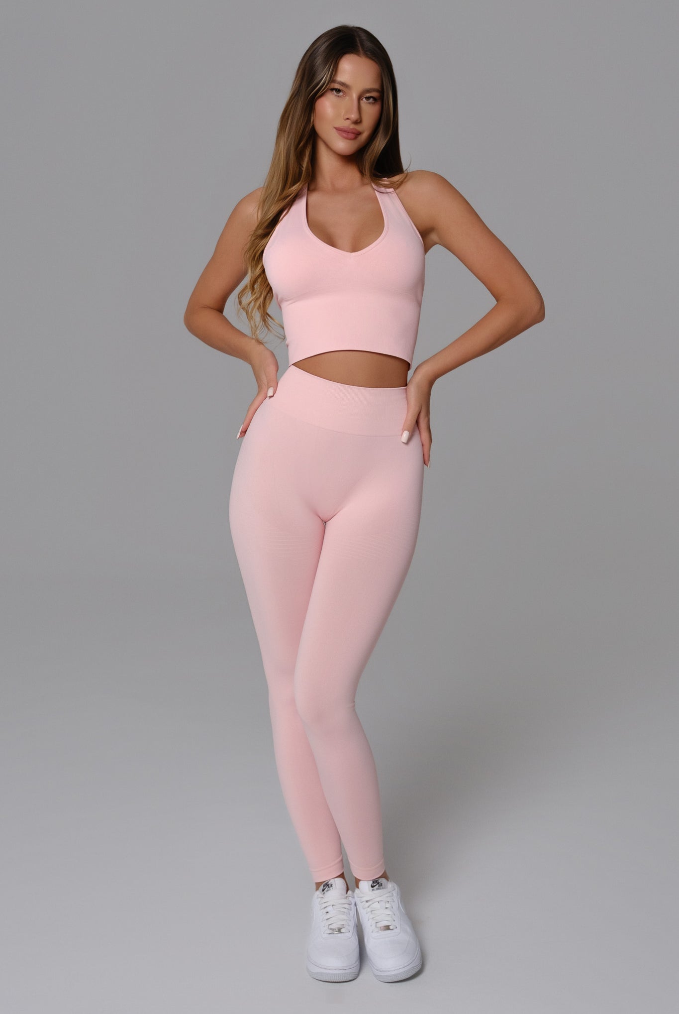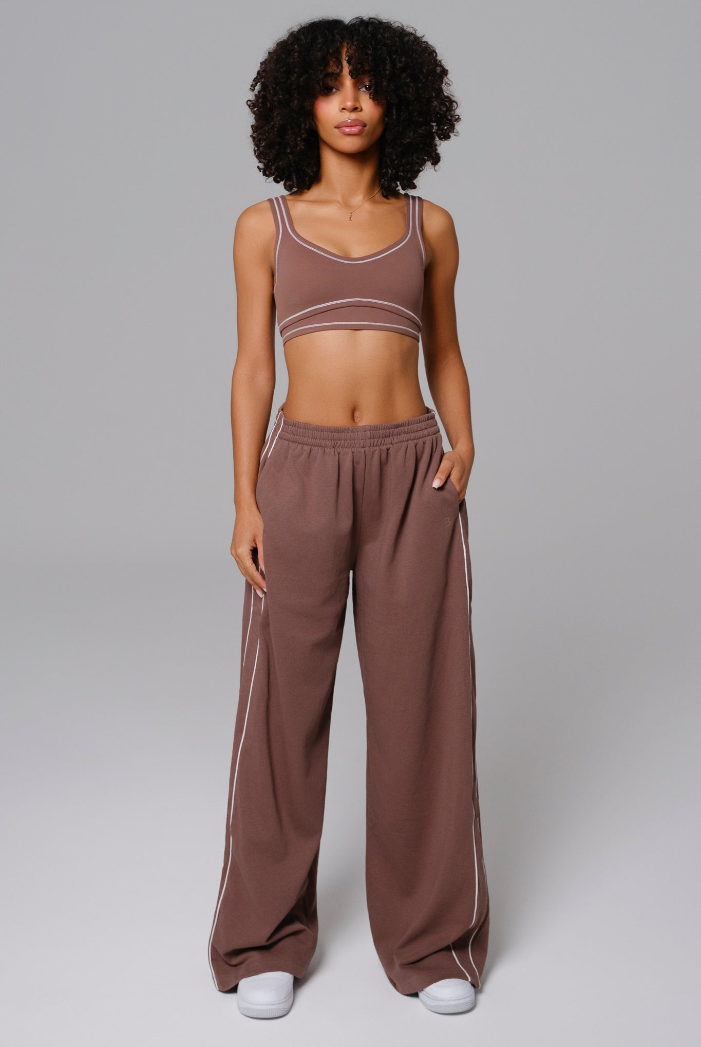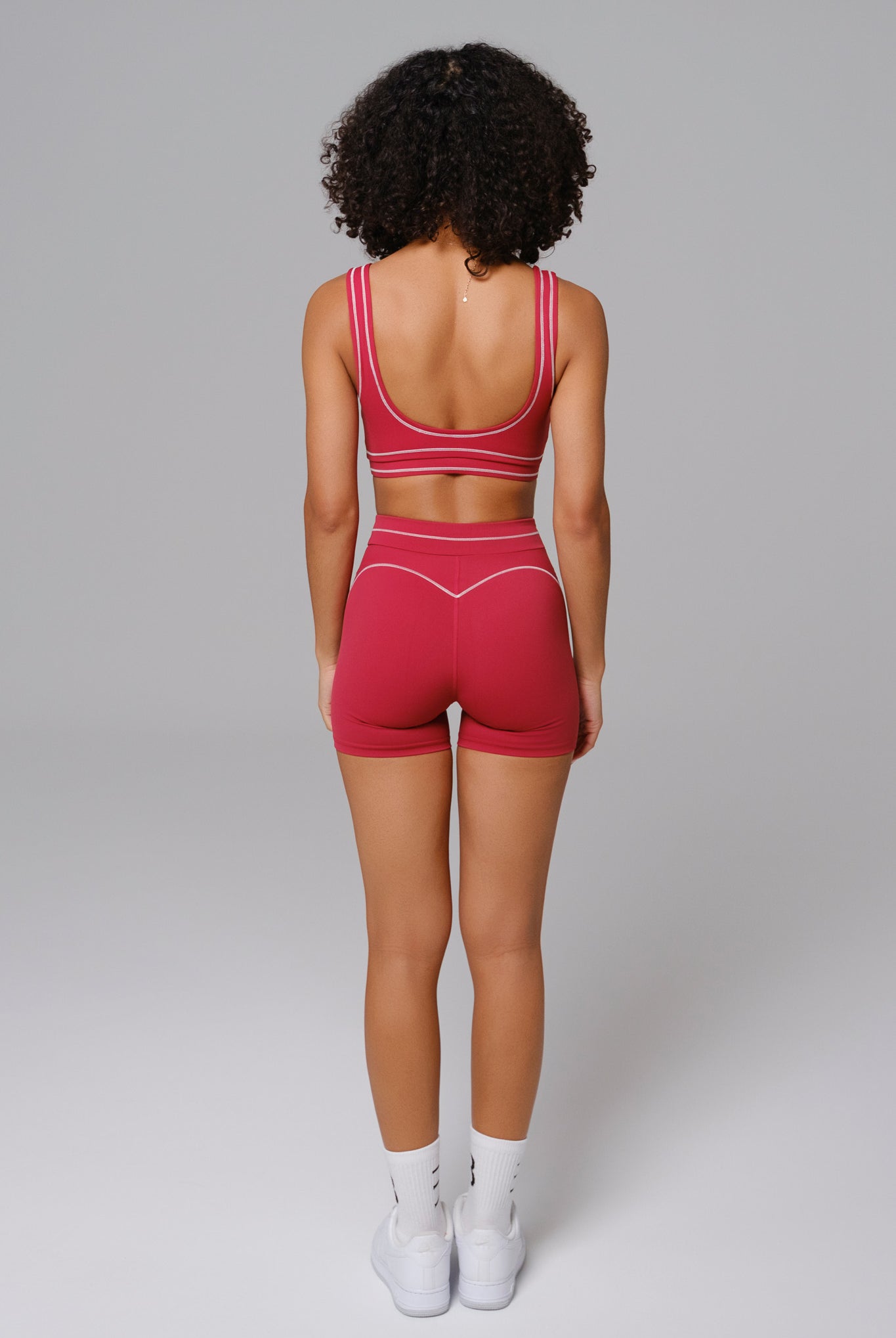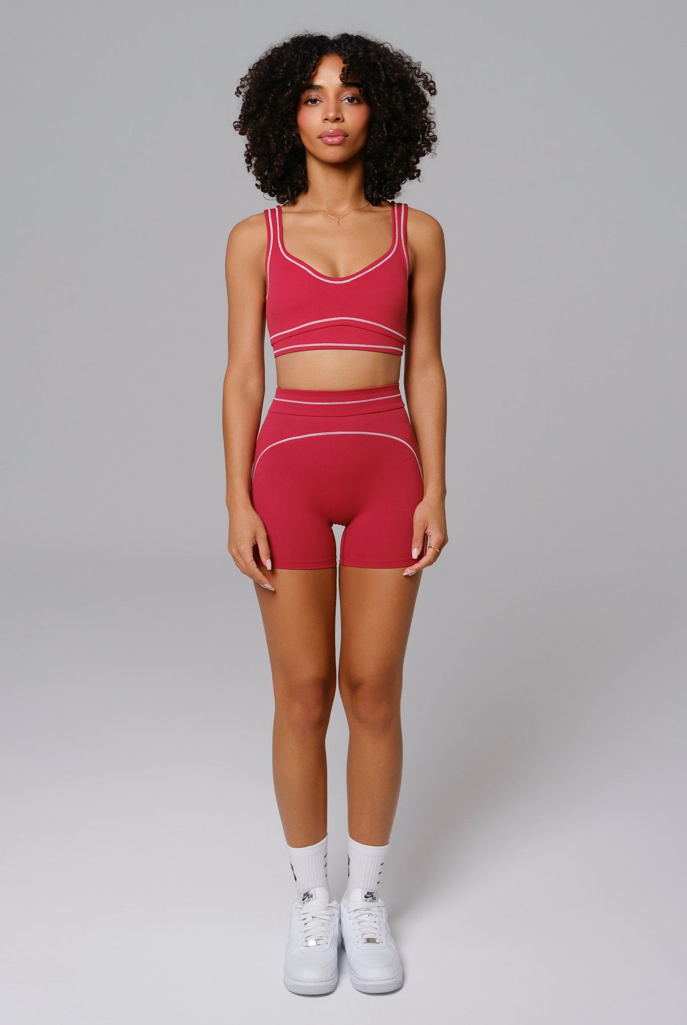 Minimal design meets sculpted performance in the Nadine Set. The scoop-neck bra with removable padding pairs with high-rise shorts that contour your silhouette. Compressive stretch fabric offers comfort and movement all day.