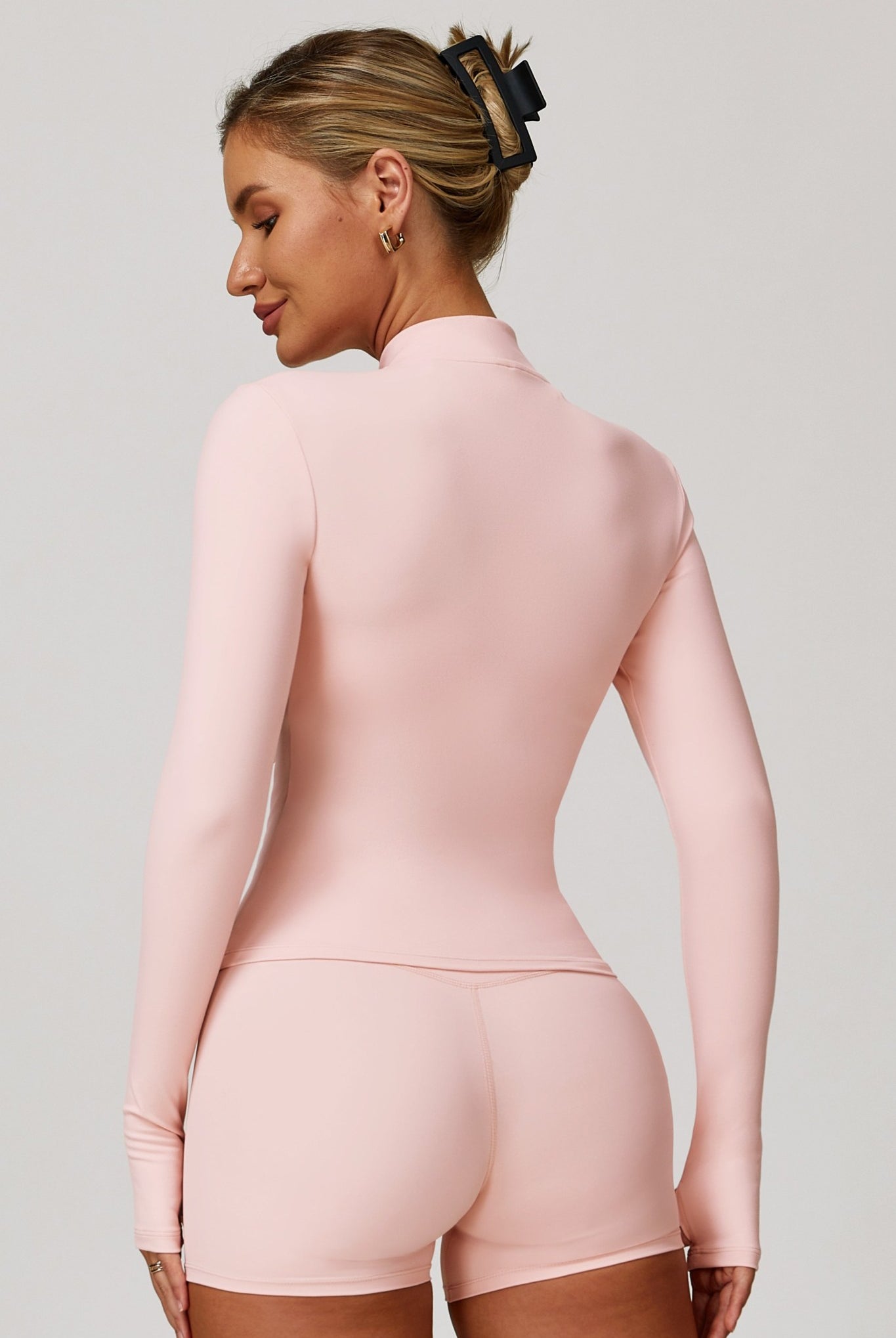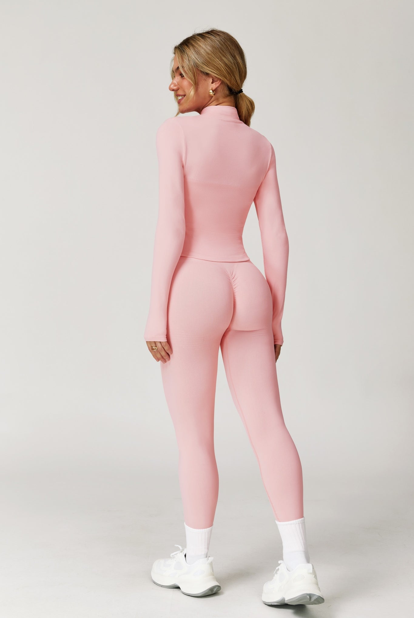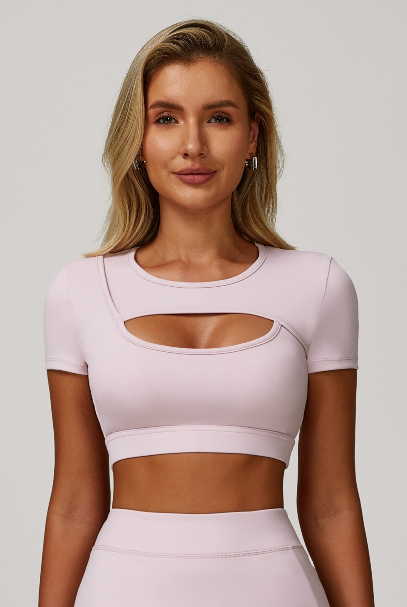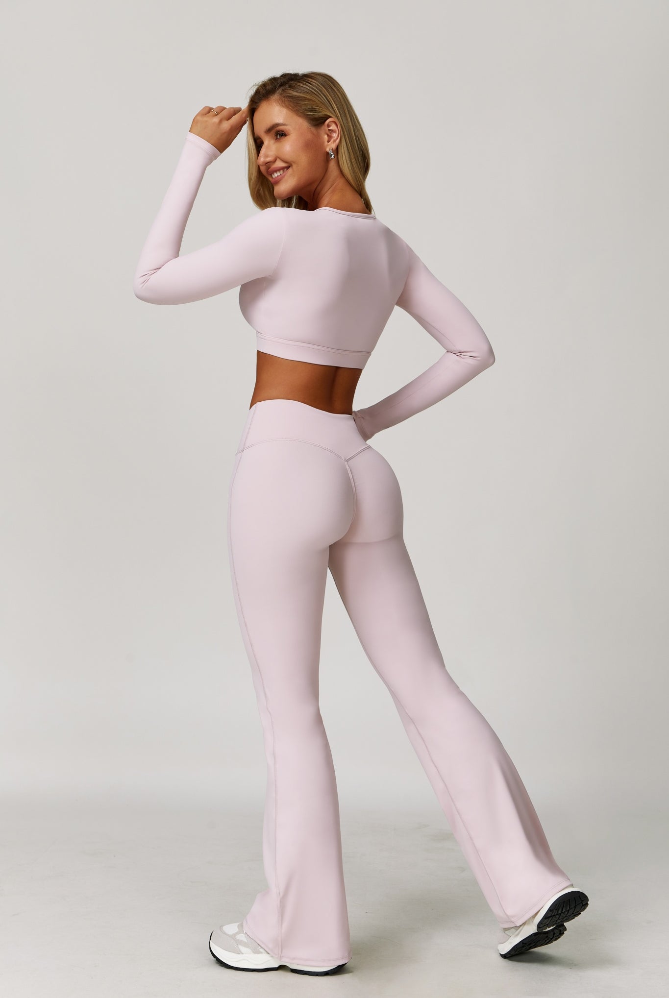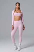 A long-sleeve crop top with built-in removable padding for light coverage and shape. The square neckline and second-skin fit make it a versatile studio-to-street piece—polished enough for errands, breathable enough for movement.