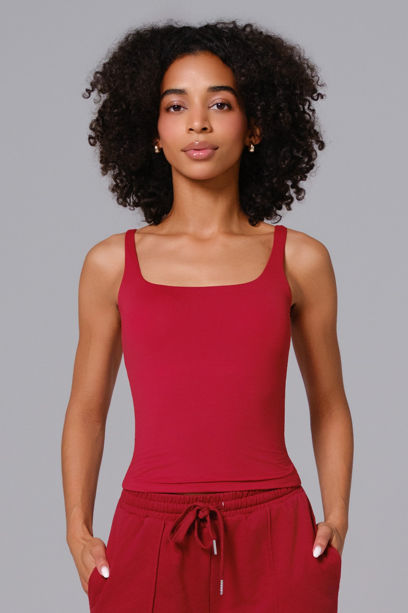 A sleek square-neck silhouette with built-in bra padding for light support and shape. Soft, smoothing, and endlessly versatile—perfect for yoga, lounging, or layering under your favorite pieces.