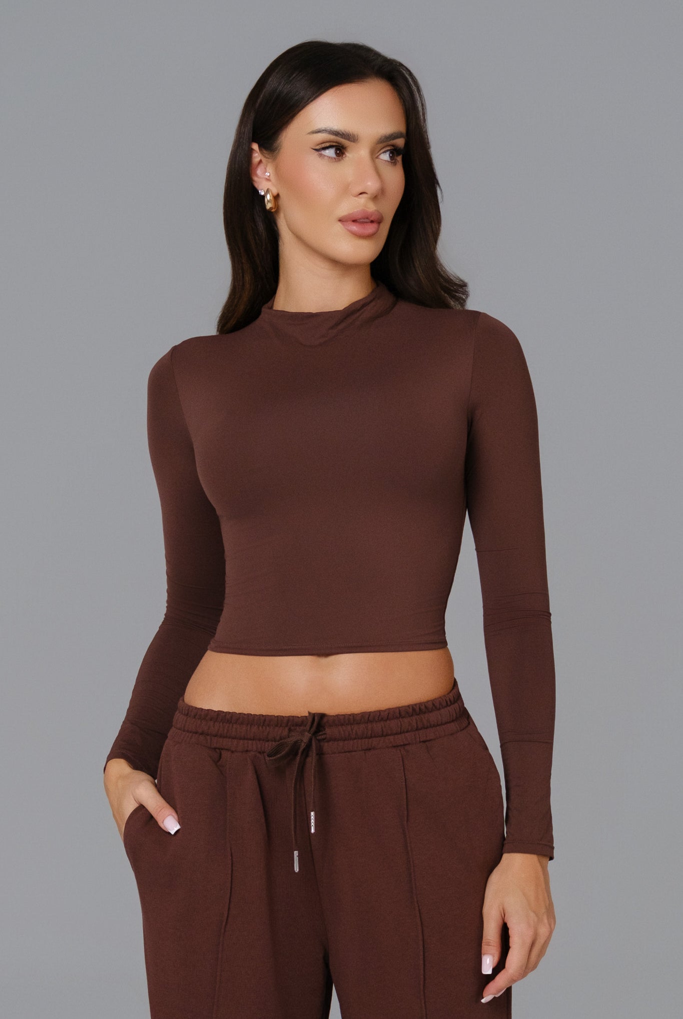 A cropped zip-up jacket designed for layering. Made with smooth, stretchy fabric for a second-skin fit, complete with long sleeves and thumbholes for added comfort. Perfect for warming up, cooling down, or everyday wear.