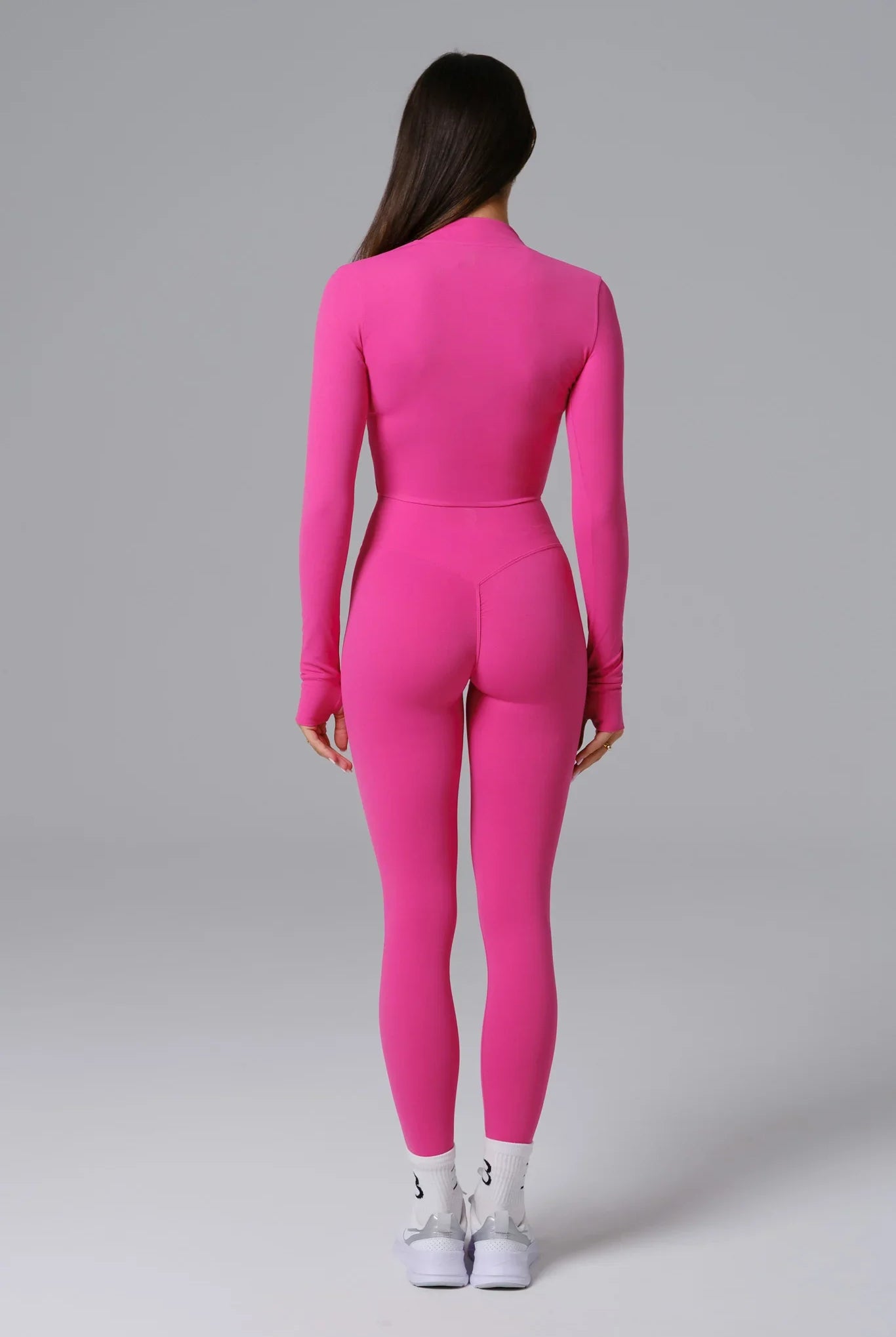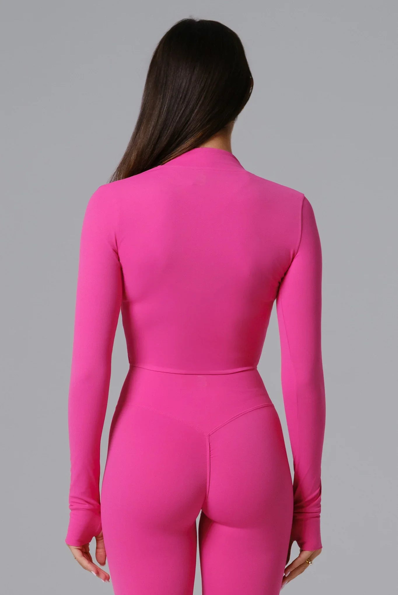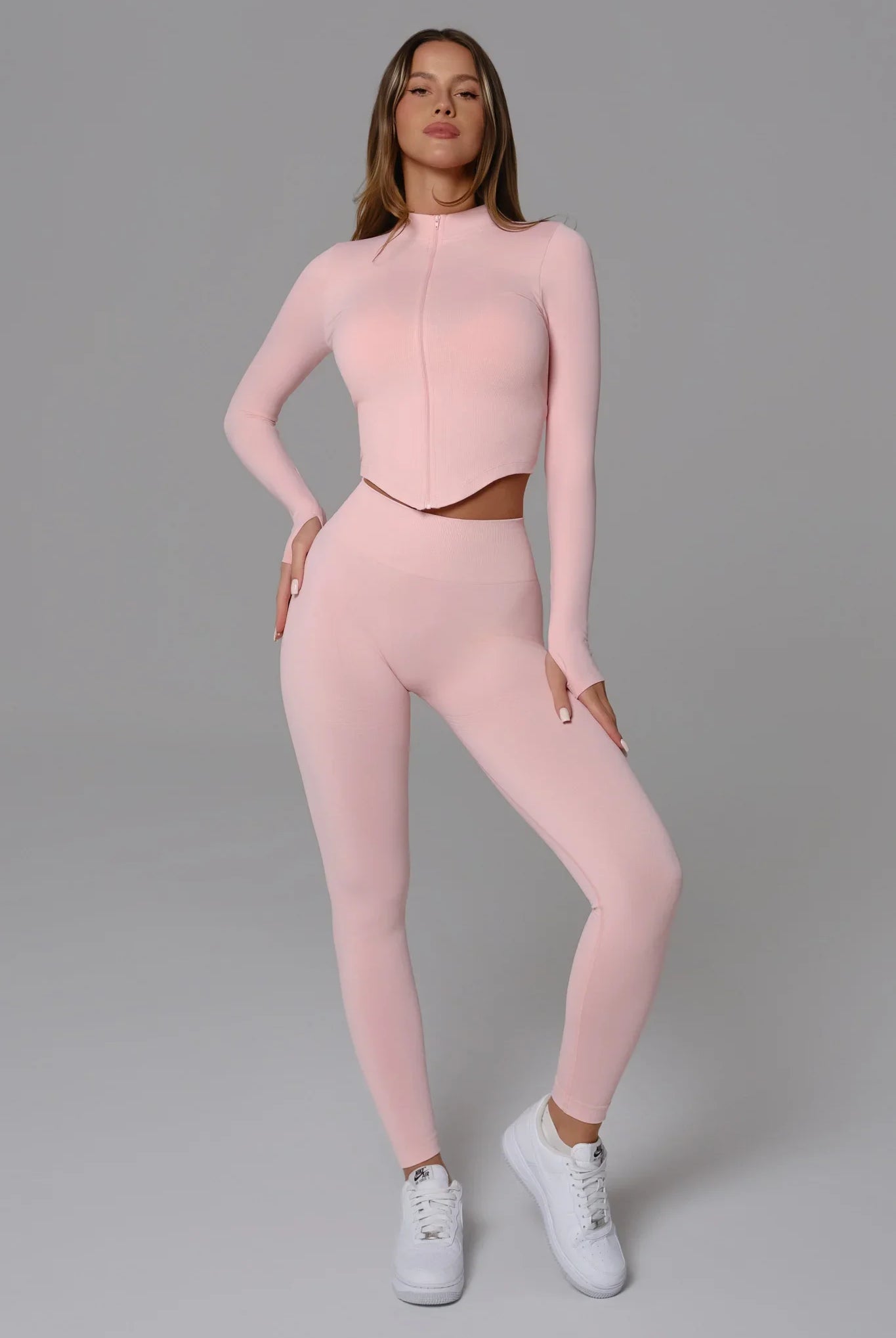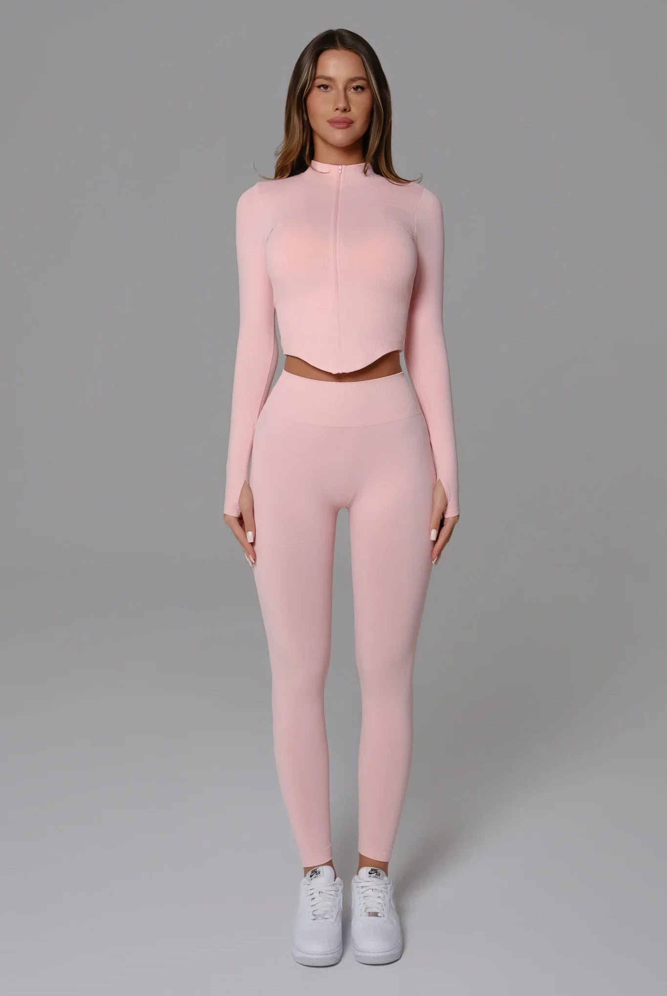 Sleek and sculpting. Stacey is a fitted zip-up made from ultra-smooth stretch fabric. Designed with long sleeves, minimalistic pockets, subtle contouring, and a cropped silhouette that layers effortlessly. Soft on the skin with a lightweight feel.