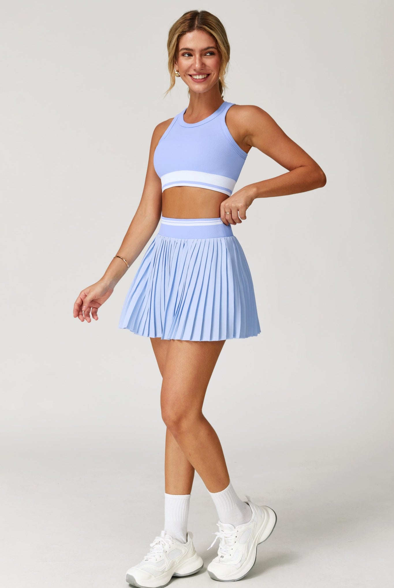 A cropped collared top with a polished silhouette, designed with a built-in bra and removable padding for support and versatility. Crafted from smooth, stretchy fabric for a comfortable and secure fit from court to street.