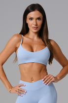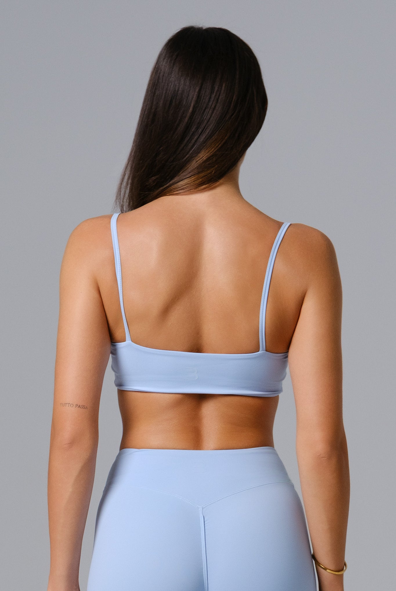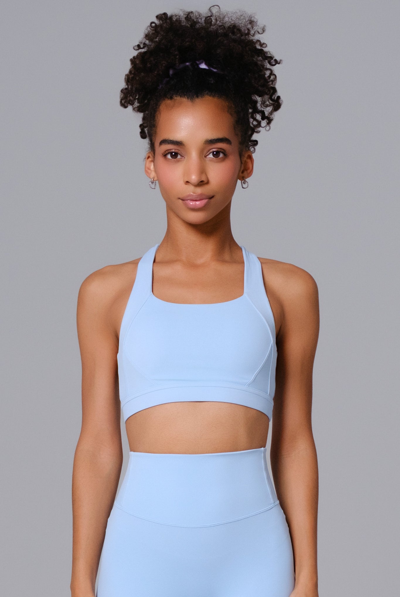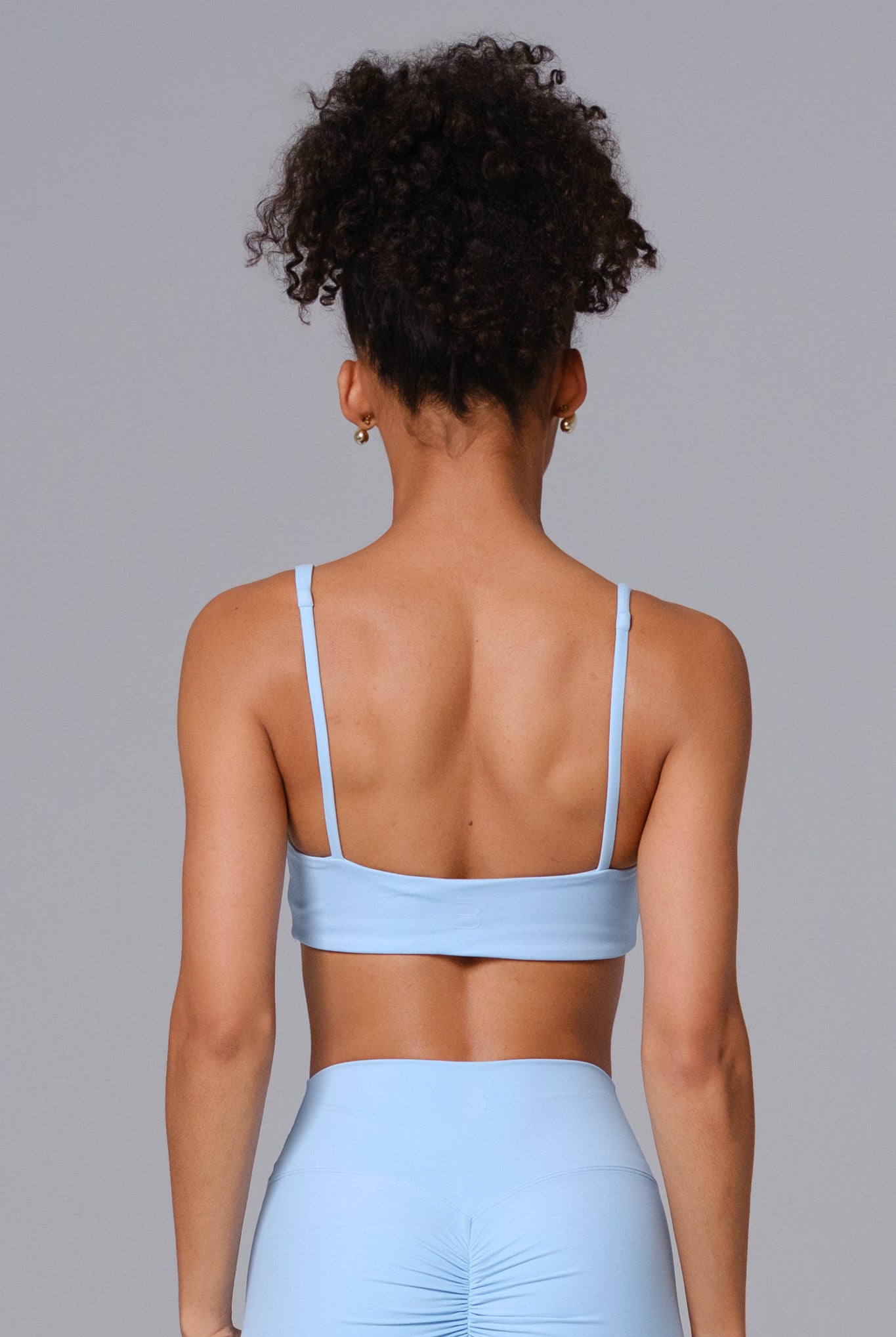 A supportive sports bra with built-in removable padding for a customizable fit. Made from recycled nylon, with slim straps and a scoop neckline that balances comfort and style for training or layering.
