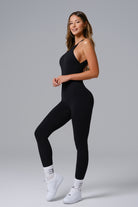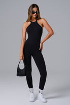 Sleek, sculpting, and endlessly wearable. Designed with a high-neck silhouette and open-back detailing, the Aiden Jumpsuit moves with you while contouring your shape. Crafted from smoothing, breathable stretch fabric that flatters in all the right places—whether you’re on the mat, out in the city, or taking it slow at home.