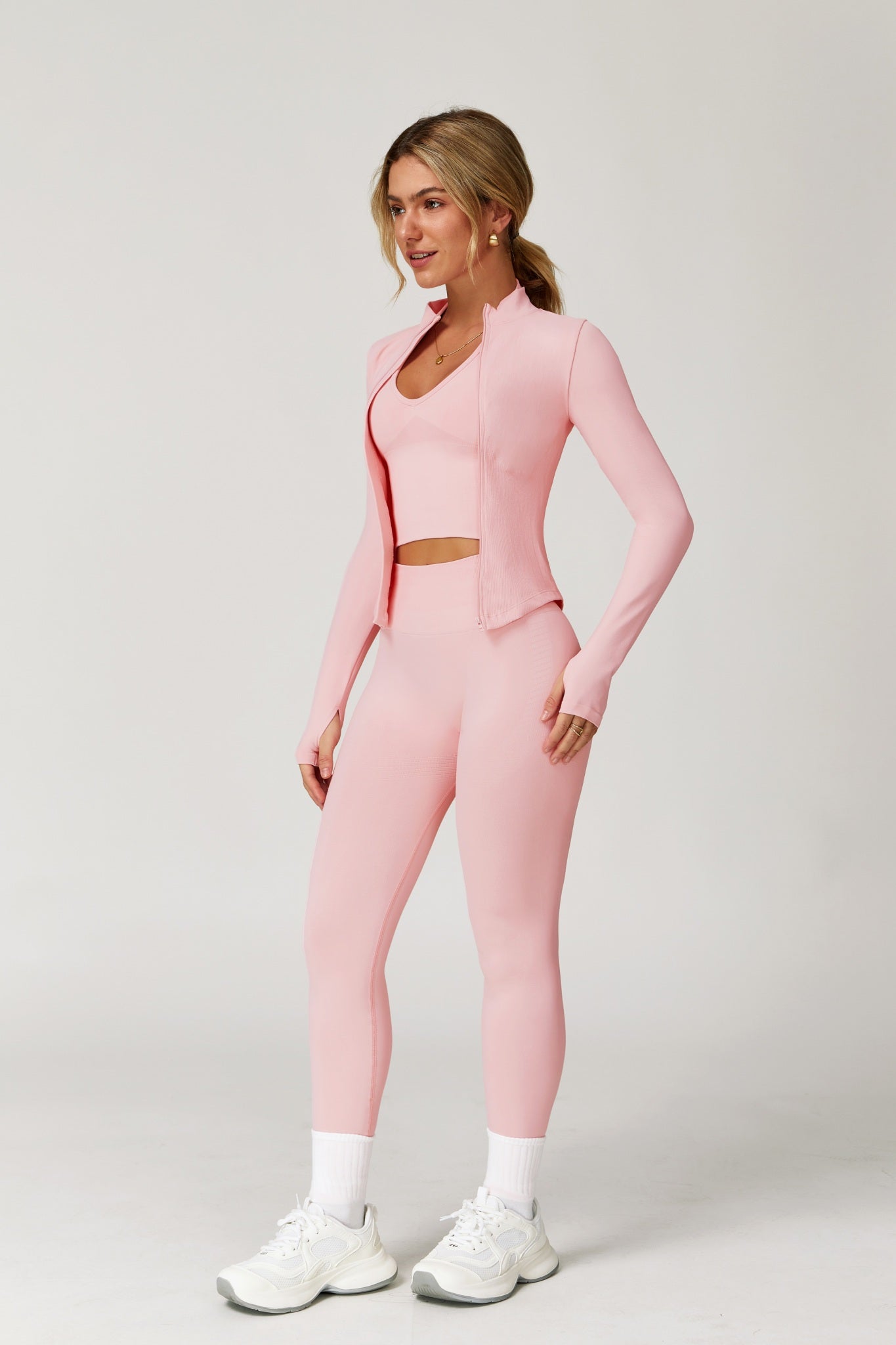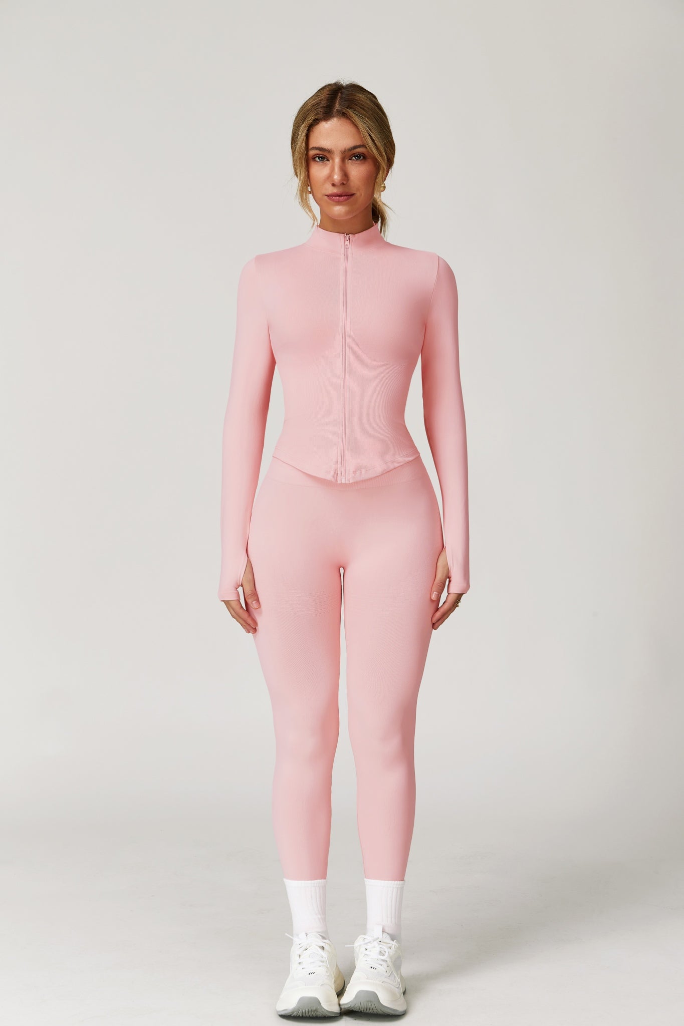 Meet the Stella Jacket - your new wardrobe staple that perfectly blends style and functionality. Featuring a stand collar, full zip, and a slim V-shaped hem, it delivers a sleek, sculpting fit that keeps you comfortable no matter the activity. Whether you're flowing through yoga, powering through Pilates, or simply lounging at home, the Stella Jacket is designed to keep pace with your lifestyle, providing the perfect balance of comfort and chic.