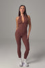 A sleek full-length jumpsuit with a zip-front neckline and an open back featuring scrunch detailing for a flattering silhouette. Crafted from smooth, stretchy fabric, the Anita Jumpsuit includes a built-in bra with removable padding for customizable support. Designed for movement and style, it transitions seamlessly from studio sessions to streetwear looks.