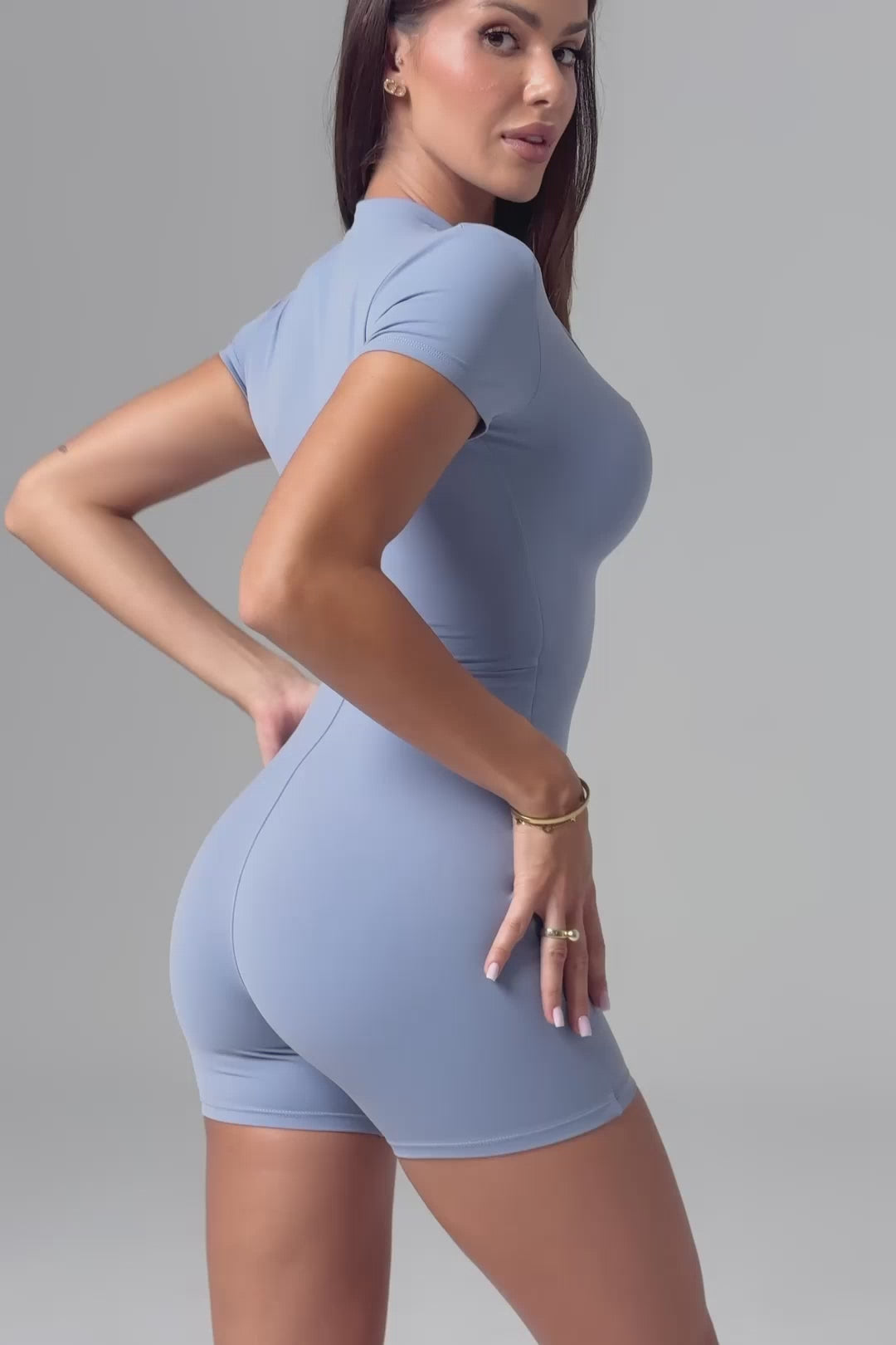 A short-sleeve jumpsuit with a zip-front neckline and minimal silhouette. Made from soft, stretchy fabric for a comfortable fit that moves with you, the Katie Jumpsuit is versatile enough for lounging, layering, or everyday wear.