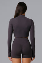 A cropped zip-up jacket designed for layering. Made with smooth, stretchy fabric for a second-skin fit, complete with long sleeves and thumbholes for added comfort. Perfect for warming up, cooling down, or everyday wear.