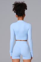 A cropped zip-up jacket designed for layering. Made with smooth, stretchy fabric for a second-skin fit, complete with long sleeves and thumbholes for added comfort. Perfect for warming up, cooling down, or everyday wear.