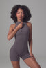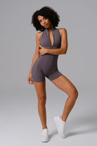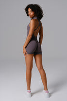 A sleek sleeveless jumpsuit with a zip-front neckline and open-back detailing. Designed in soft, stretchy fabric with a built-in bra and removable padding for customizable support, the Milana Jumpsuit delivers effortless comfort and a flattering fit—perfect from studio sessions to everyday wear.