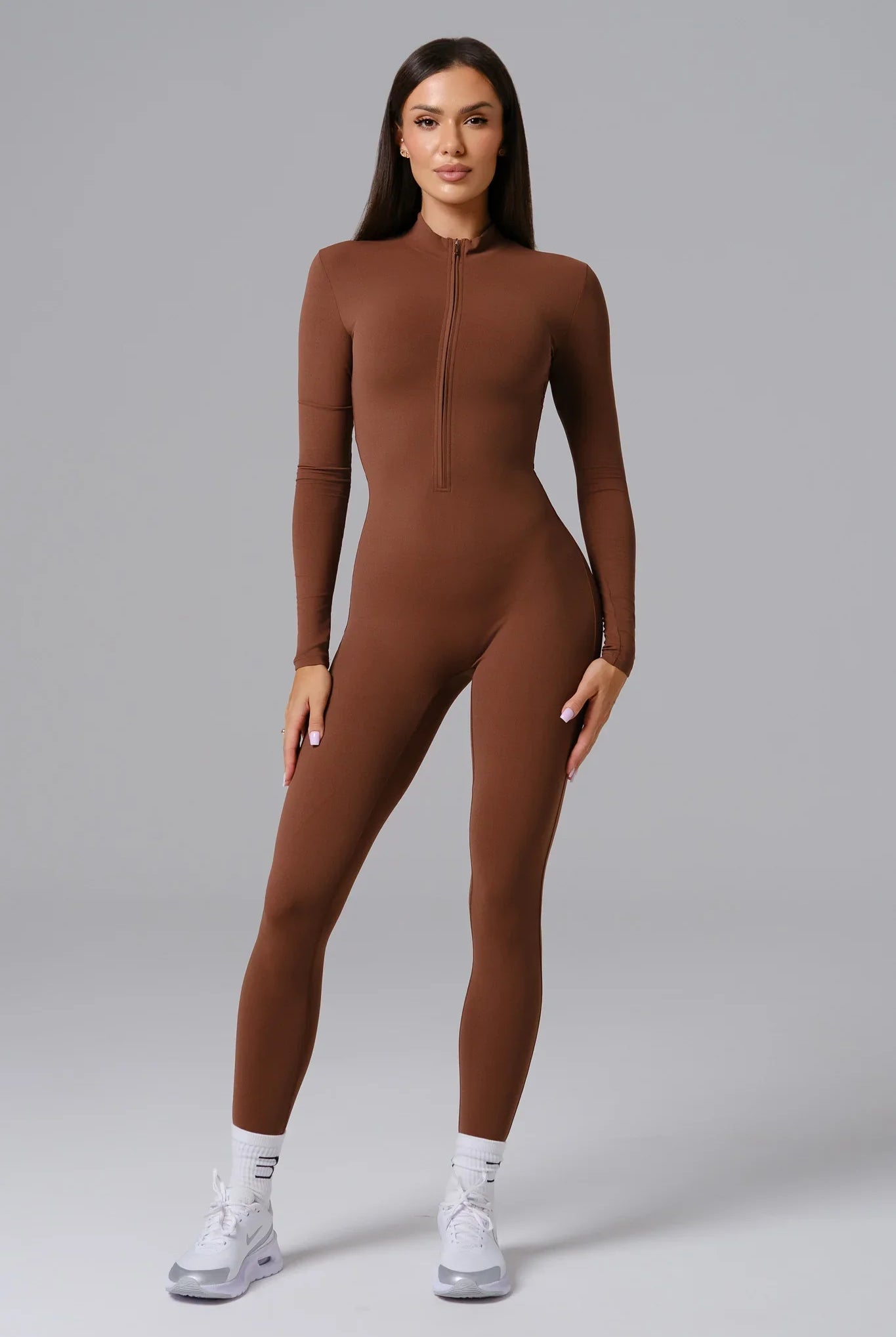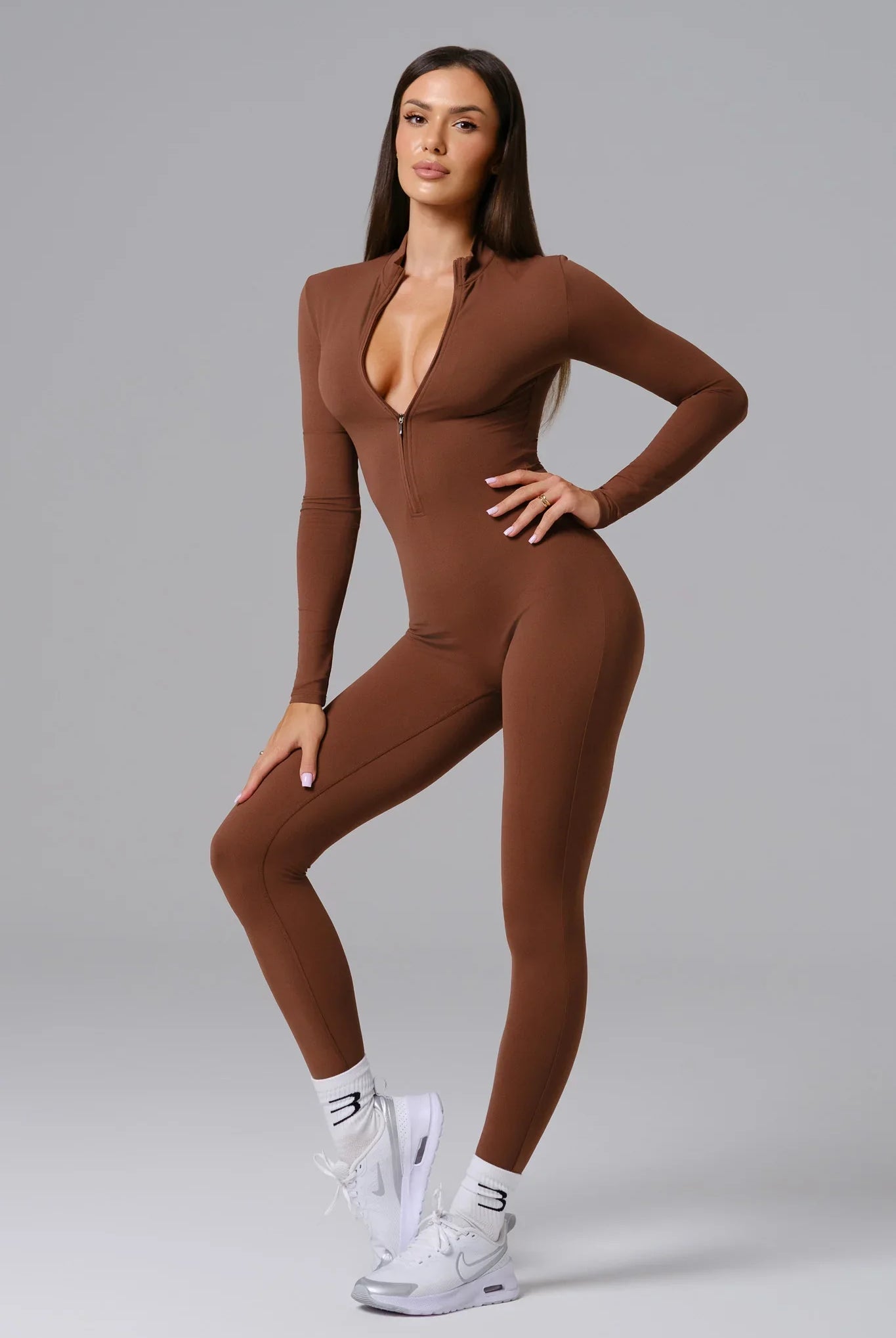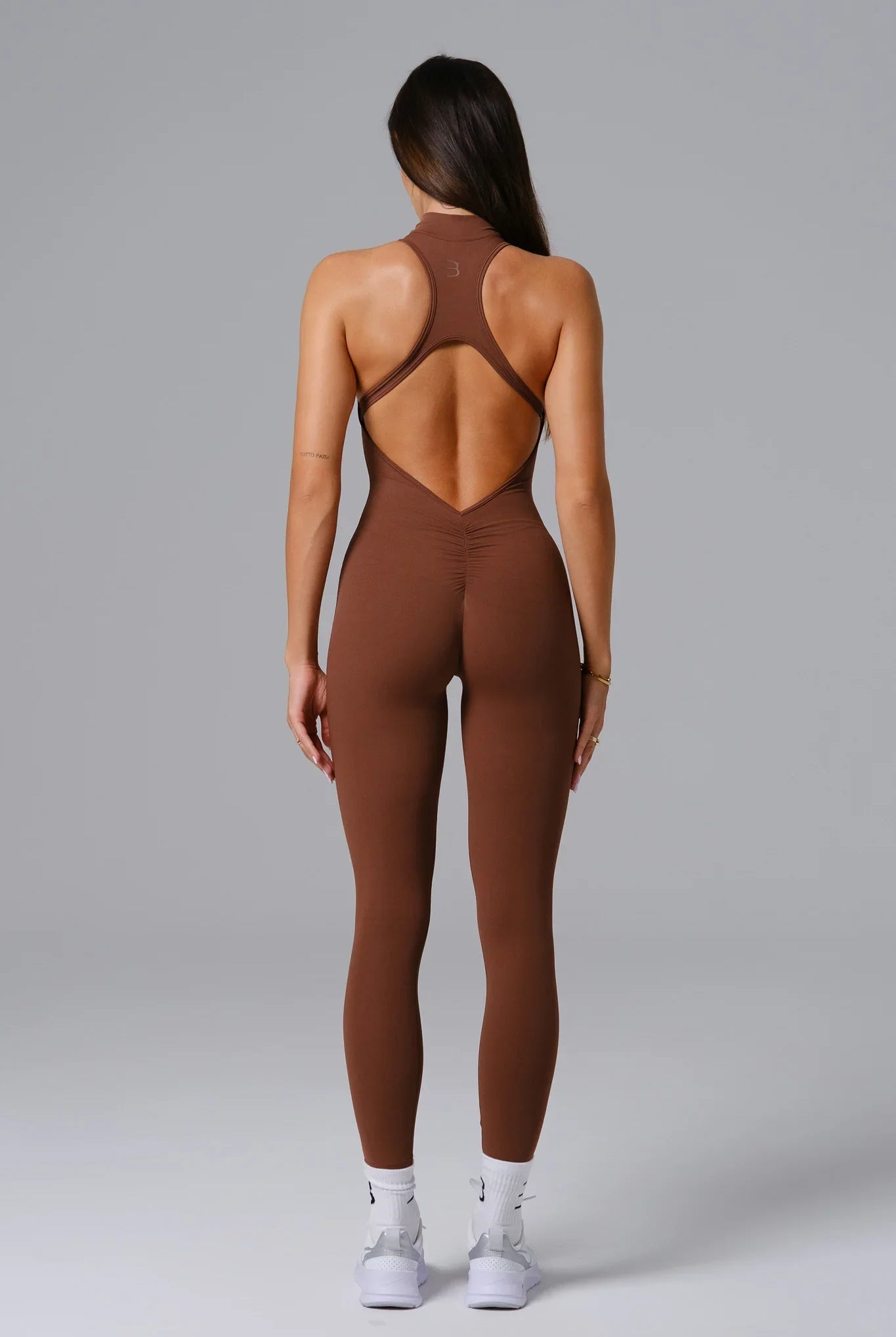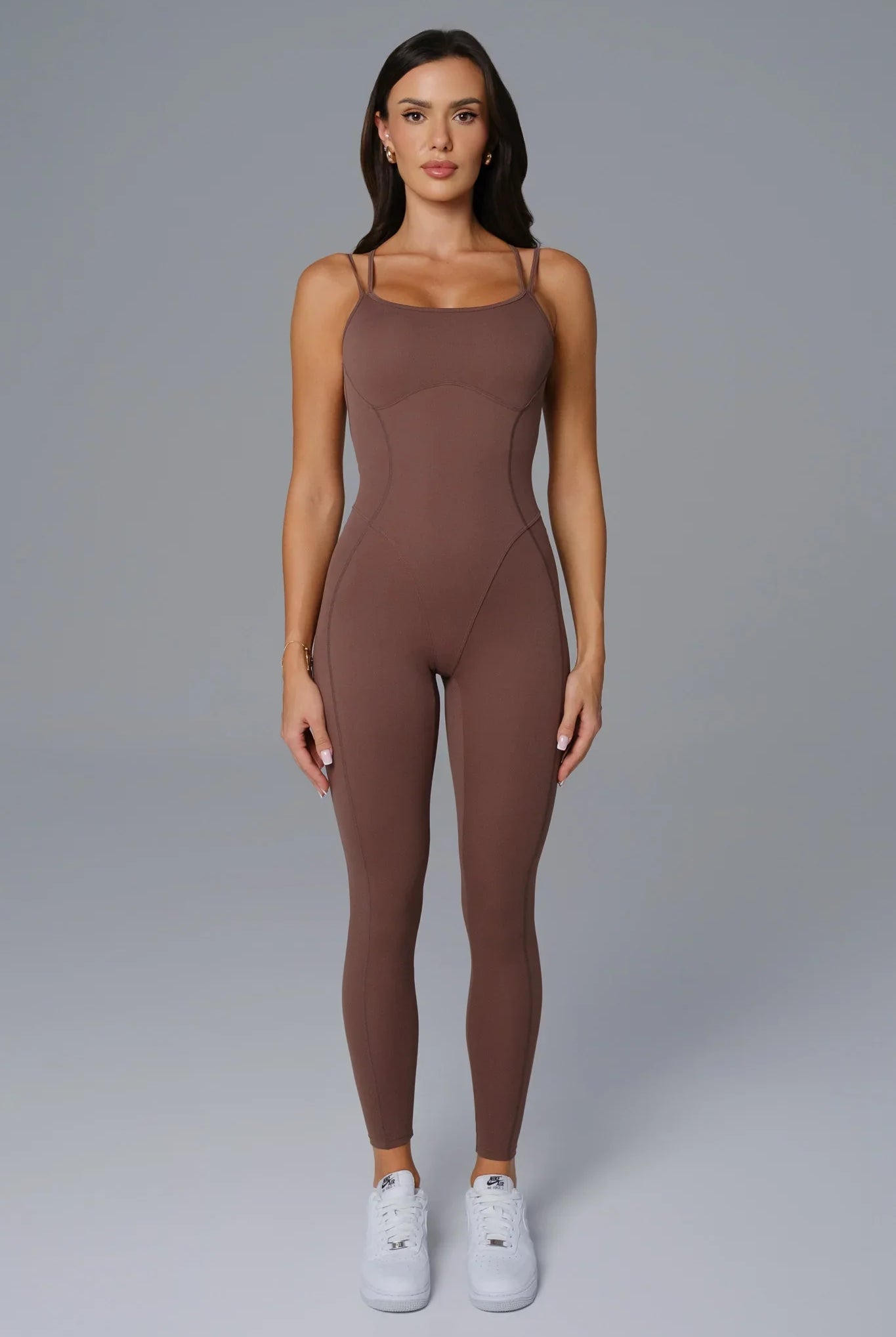 A sleek full-length jumpsuit with flared legs, a scoop neckline, and an open back cut-out for a modern touch. Crafted from soft, stretchy fabric with a built-in bra and removable padding, the Ariana Jumpsuit offers effortless comfort and support while keeping a chic, elevated look from day to night.