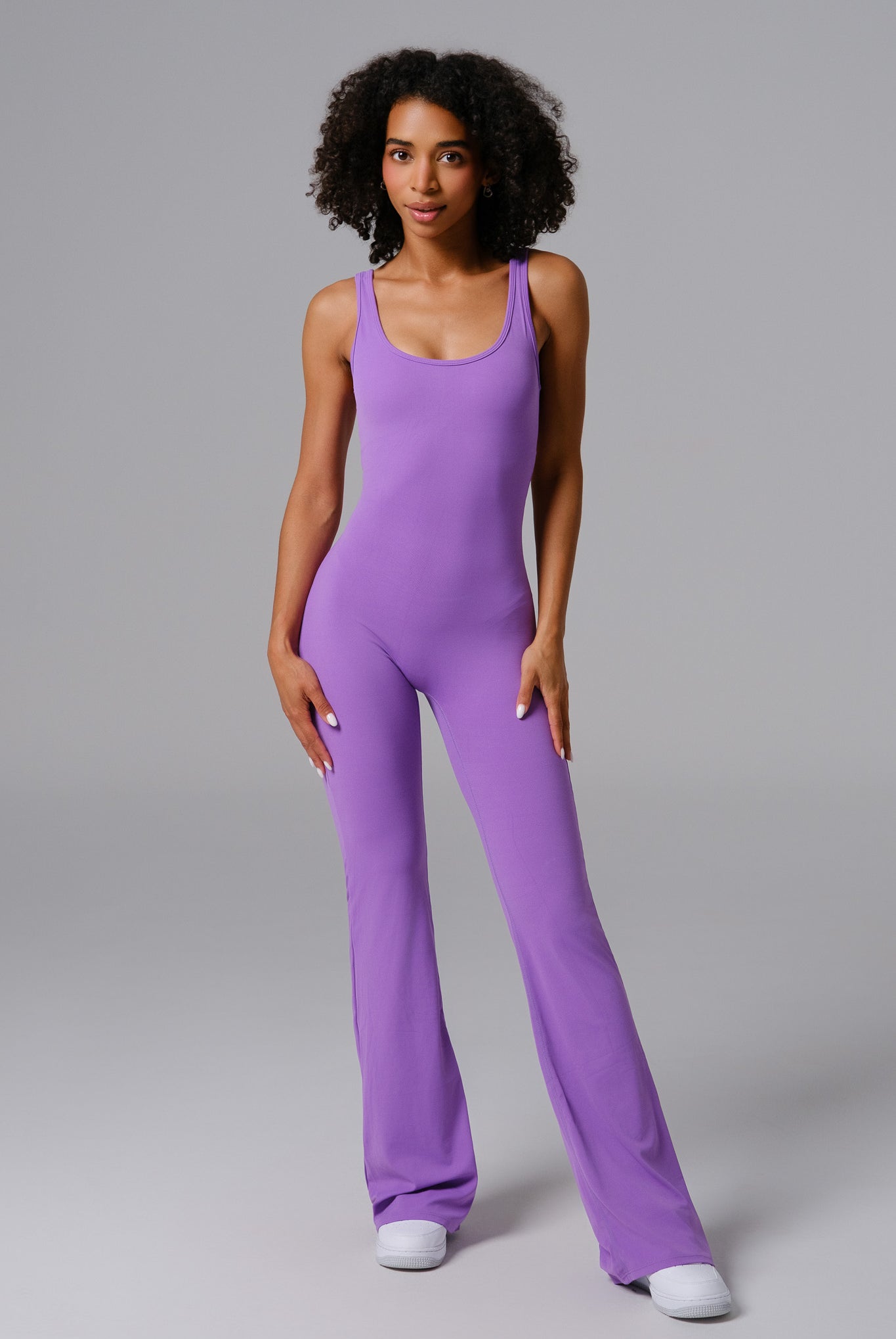 A sleek full-length jumpsuit with flared legs, a scoop neckline, and an open back cut-out for a modern touch. Crafted from soft, stretchy fabric with a built-in bra and removable padding, the Ariana Jumpsuit offers effortless comfort and support while keeping a chic, elevated look from day to night.
