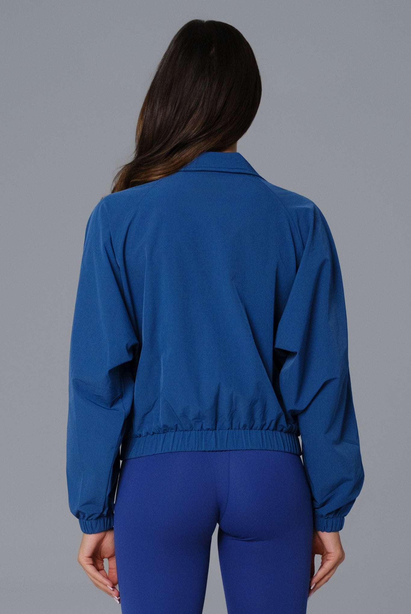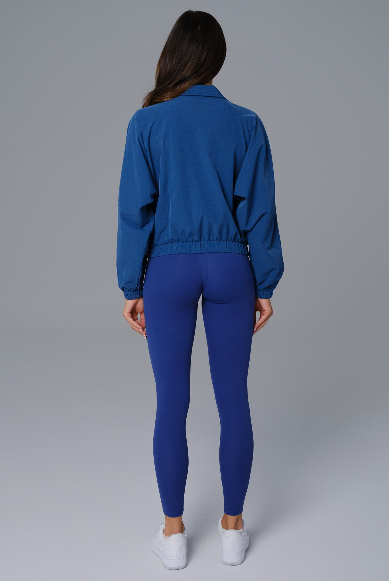 A cropped zip-up jacket designed for layering. Made with smooth, stretchy fabric for a second-skin fit, complete with long sleeves and thumbholes for added comfort. Perfect for warming up, cooling down, or everyday wear.