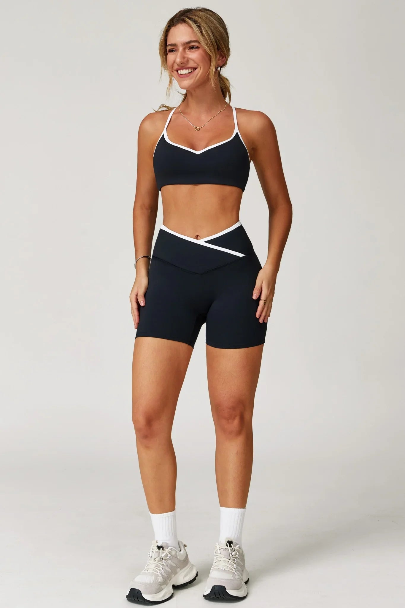 Dive into the comfort of Isabelle Shorts, where fashion meets function in the smoothest way possible. Designed with a crossover waistband and high-waisted, flattering fit, these shorts move with you through whatever your day holds. The two-toned contrast detail adds a subtle touch of style, making them perfect for hot yoga, casual errands, or brunch with friends. Made to feel weightless and supportive, they’re built to keep up with you without compromising on comfort or style.