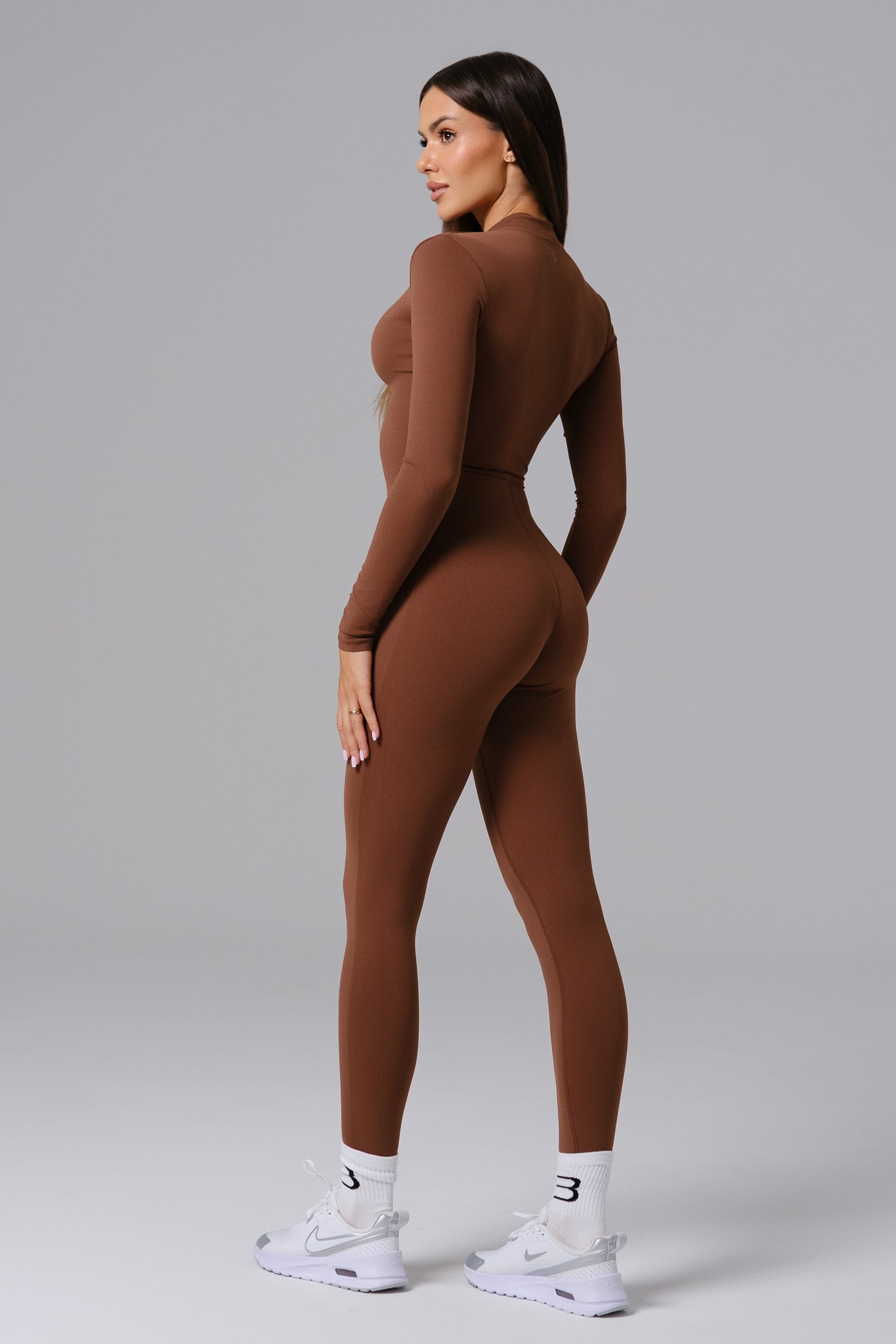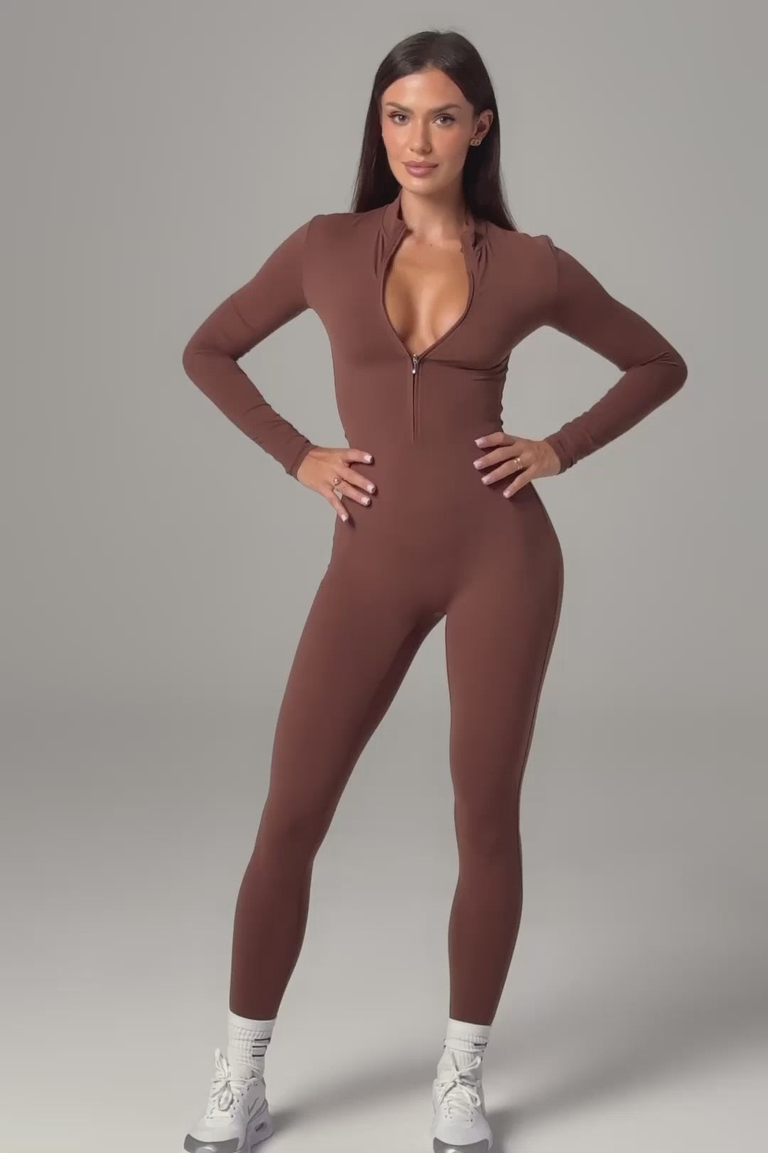 Sleek and versatile, the Mia Jumpsuit features a full-length silhouette with long sleeves and a zip-front design for adjustable coverage. Made from smooth, stretchy fabric, it moves with you effortlessly. A modern essential that transitions seamlessly from workouts to off-duty moments.