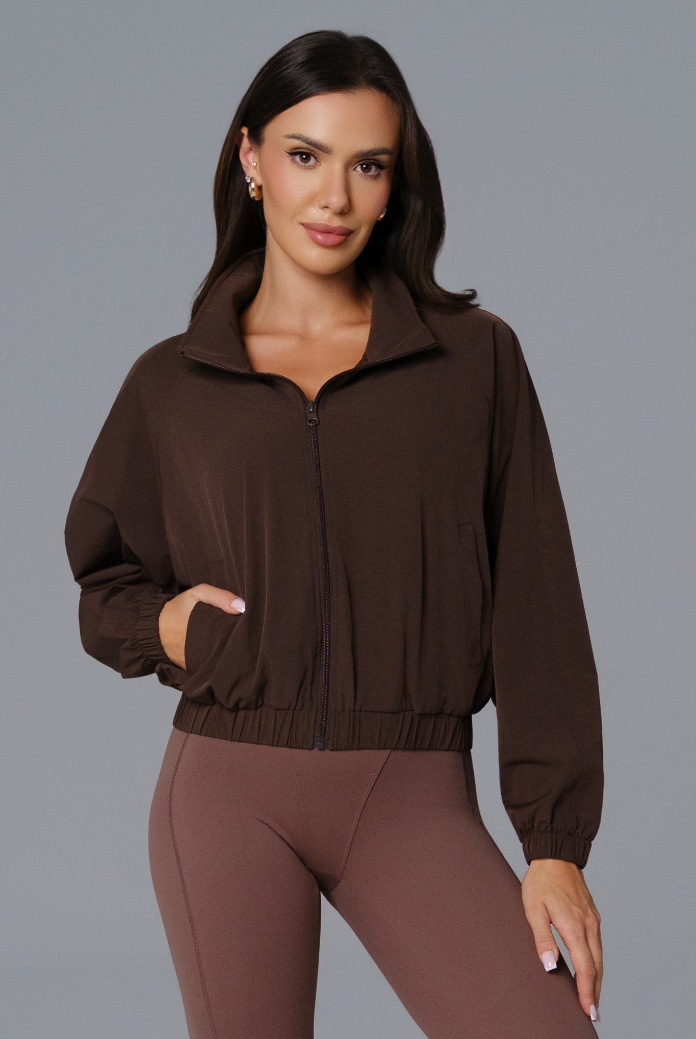 Relaxed and lightweight. Solana has a cropped, easy fit with elastic cuffs and hem for a naturally structured shape. Designed with a zip front and high collar for wind protection, made from smooth, water-repellent fabric that’s perfect for layering.