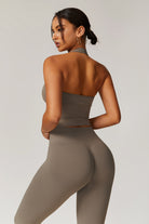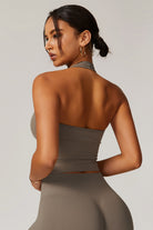 Supportive and sleek. Stella is designed with a halter neckline and a compressive ribbed waist. Made from thick stretch fabric with removable padding for extra support.