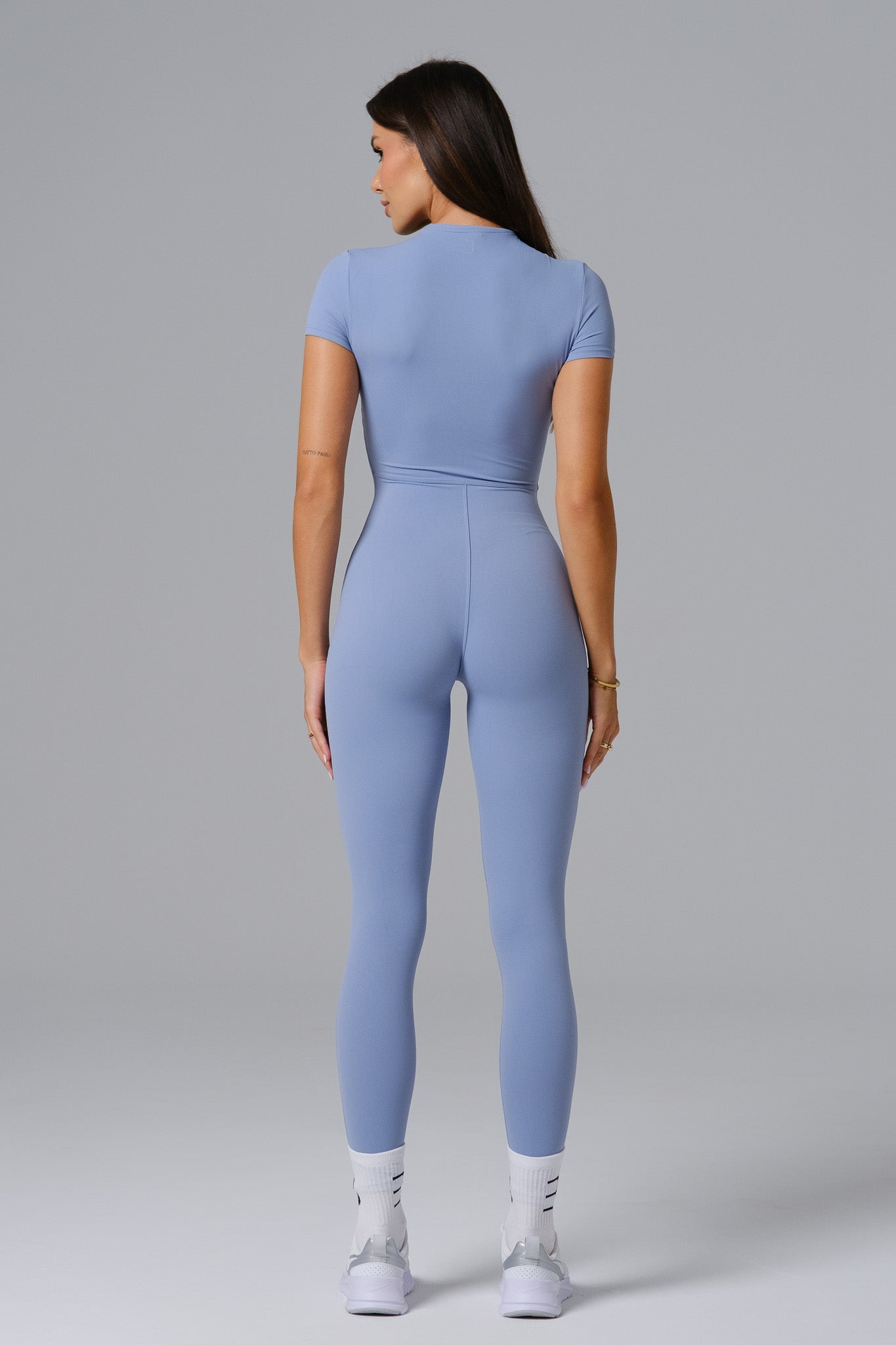 Designed with a sleek zip-front and short sleeves, the Hailey Jumpsuit brings a modern edge to an activewear classic. The full-length silhouette is crafted from smooth, flexible fabric that moves with you. Perfect for layering or wearing solo, it delivers comfort and style from studio to street.