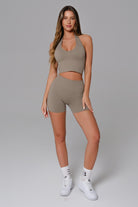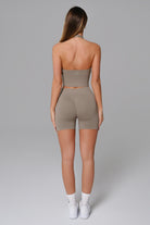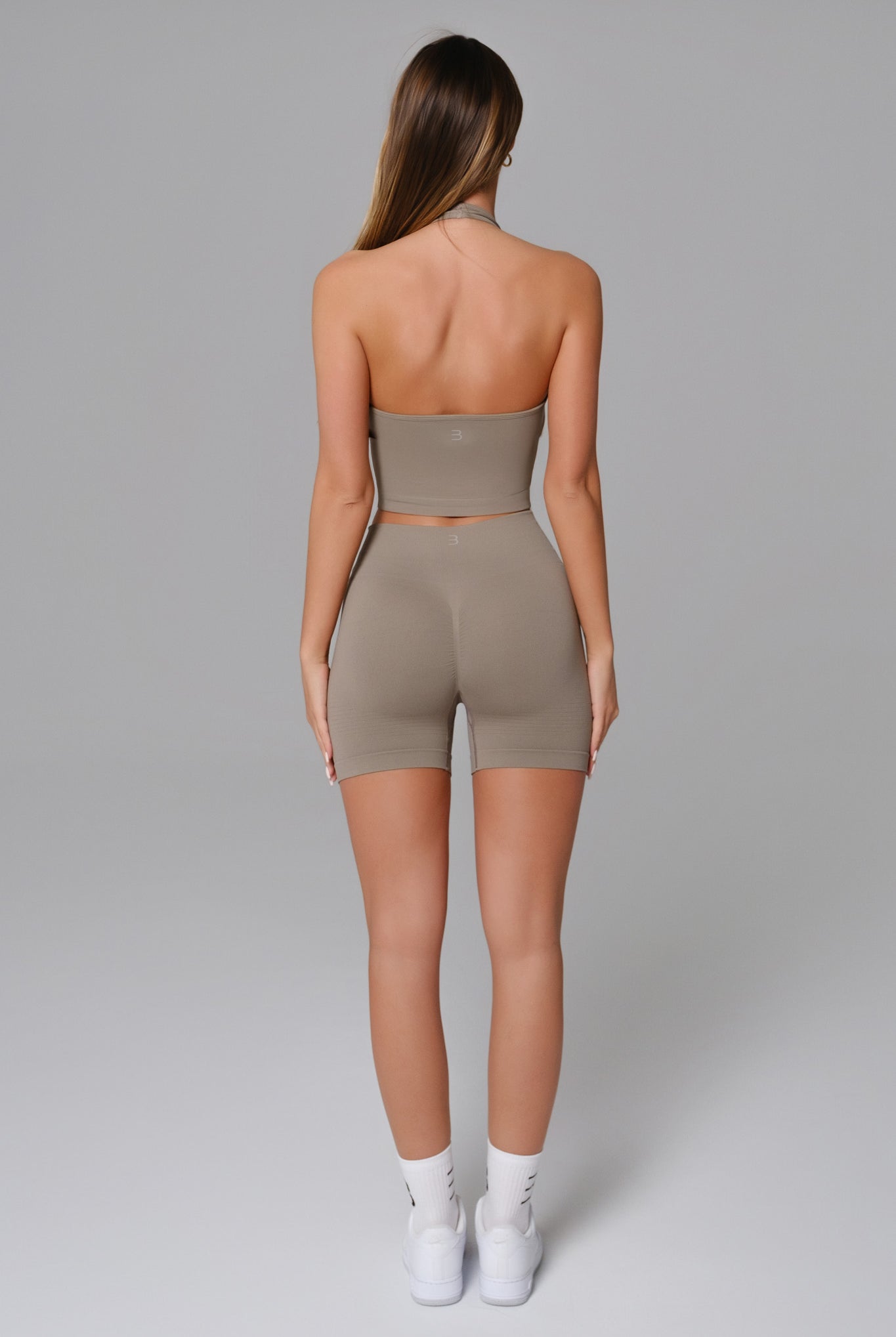 Sculpted and seamless. Stella features a high ribbed waistband, hip-contouring lines, and a defined heart-shaped scrunch. Made from thick, compressive stretch fabric.